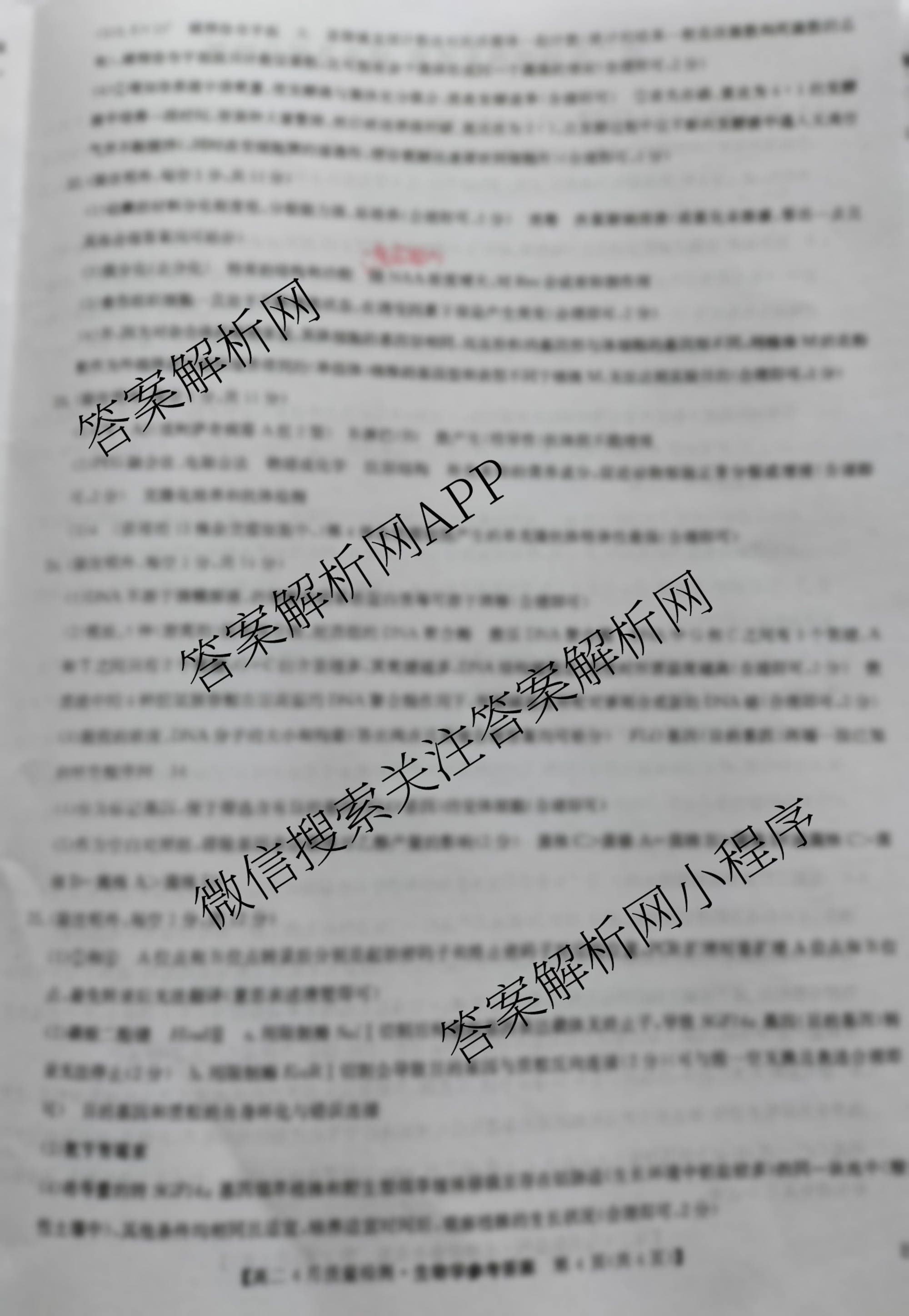 - 高二[九师联盟]2024~2025学年4月质量检测生物(A)答案