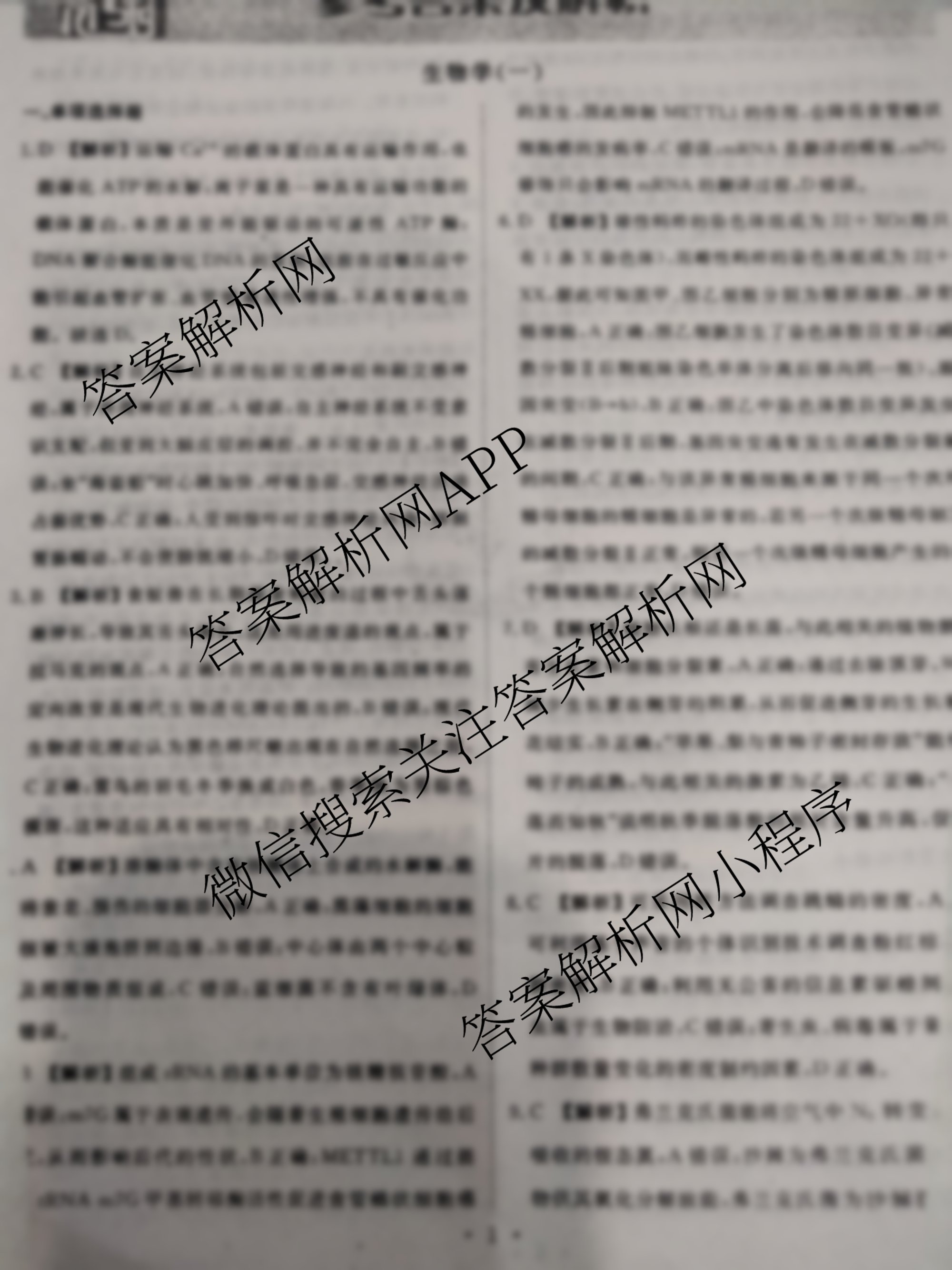 - [高三](衡水金卷先享题)·压轴卷 2025年普通高中学业水平选择性考试模拟试题(一)1生物(FJ)答案