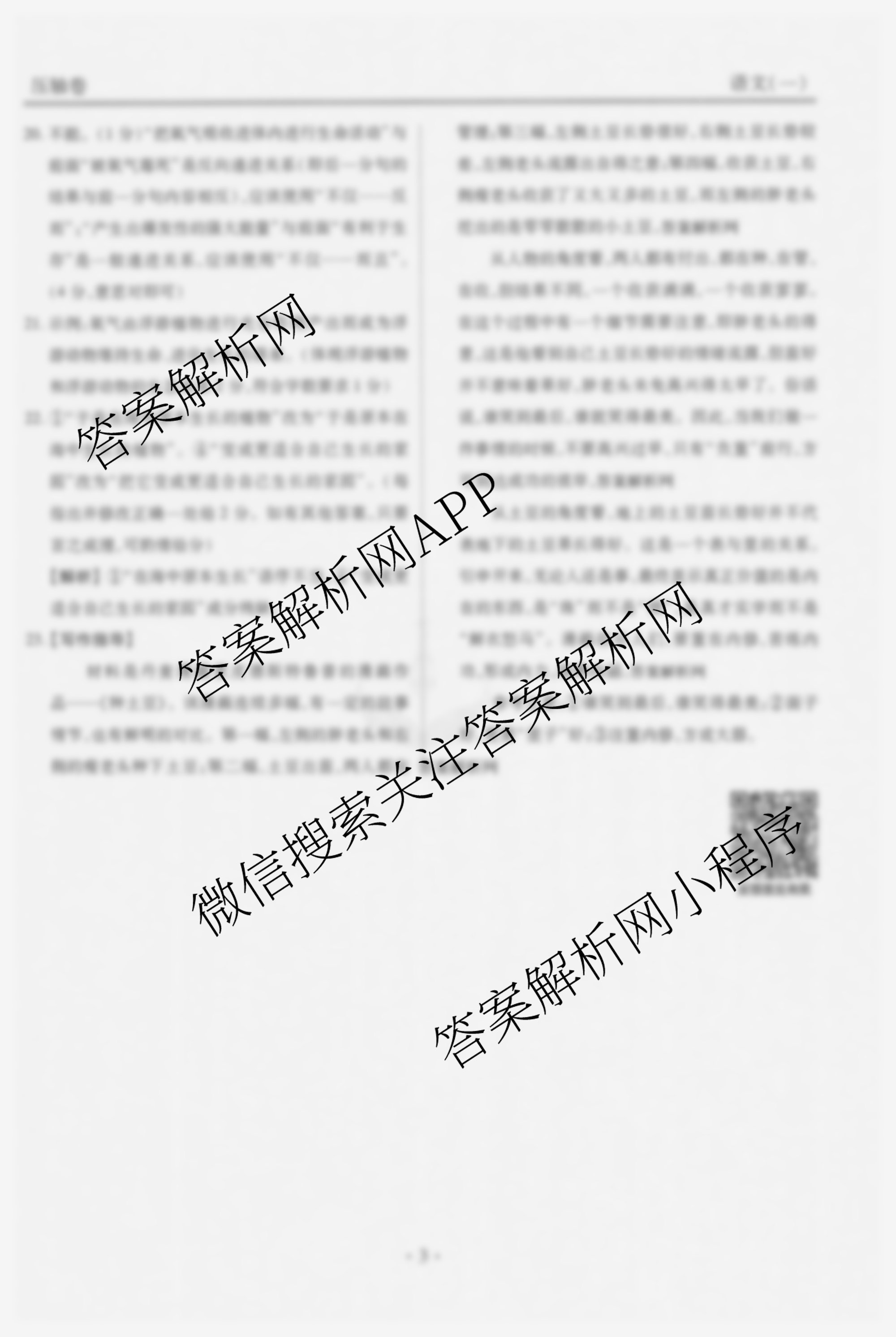 - (高三)[衡水金卷先享题]·压轴卷 2025年普通高等学校招生全国统一考试模拟试题(一)1语文答案
