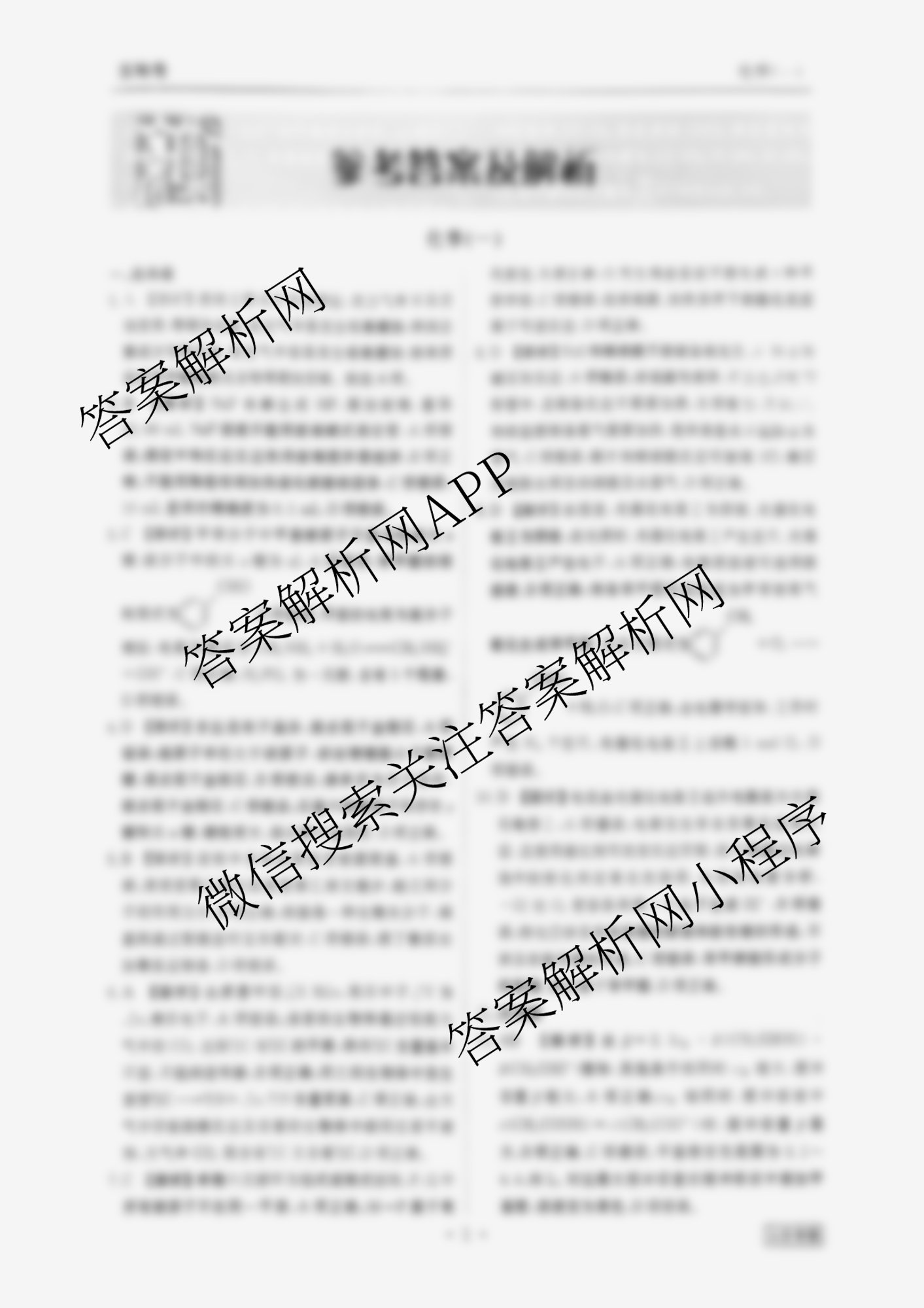 - (高三)衡水金卷先享题压轴卷 2025年普通高中学业水平选择性考试模拟试题(一)1化学(Q)答案