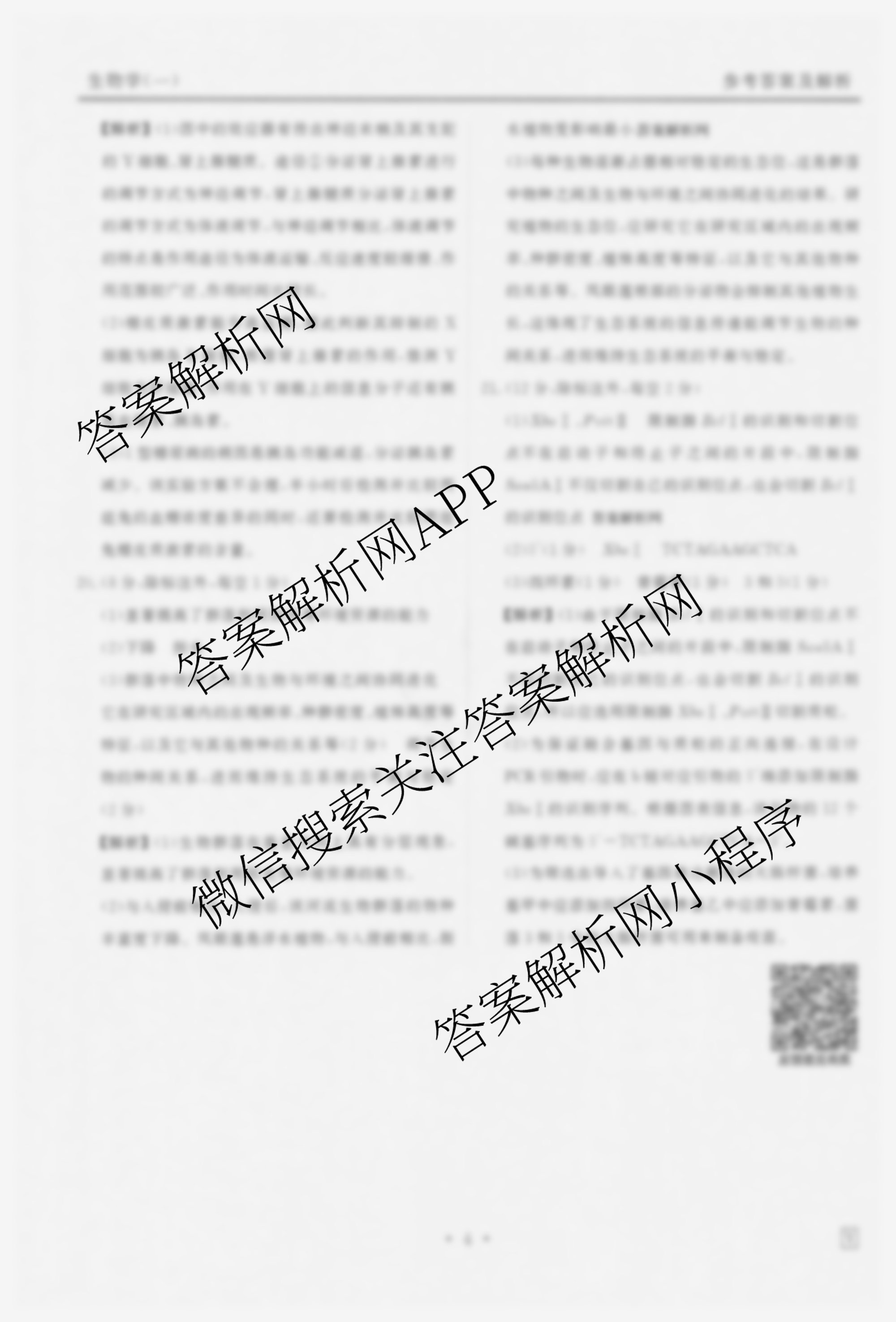 - [高三](衡水金卷先享题)·压轴卷 2025年普通高中学业水平选择性考试模拟试题(一)1生物(FJ)答案