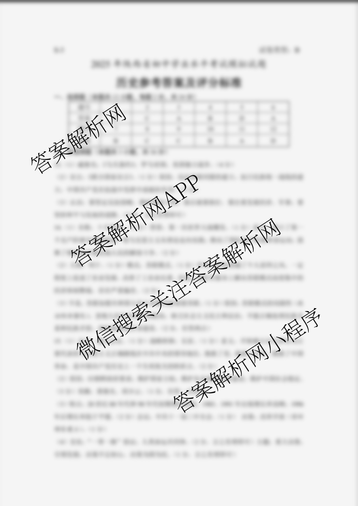 - 九年级S-32025年[陕西省初中学业水平考试模拟试题][试卷类型B]历史答案