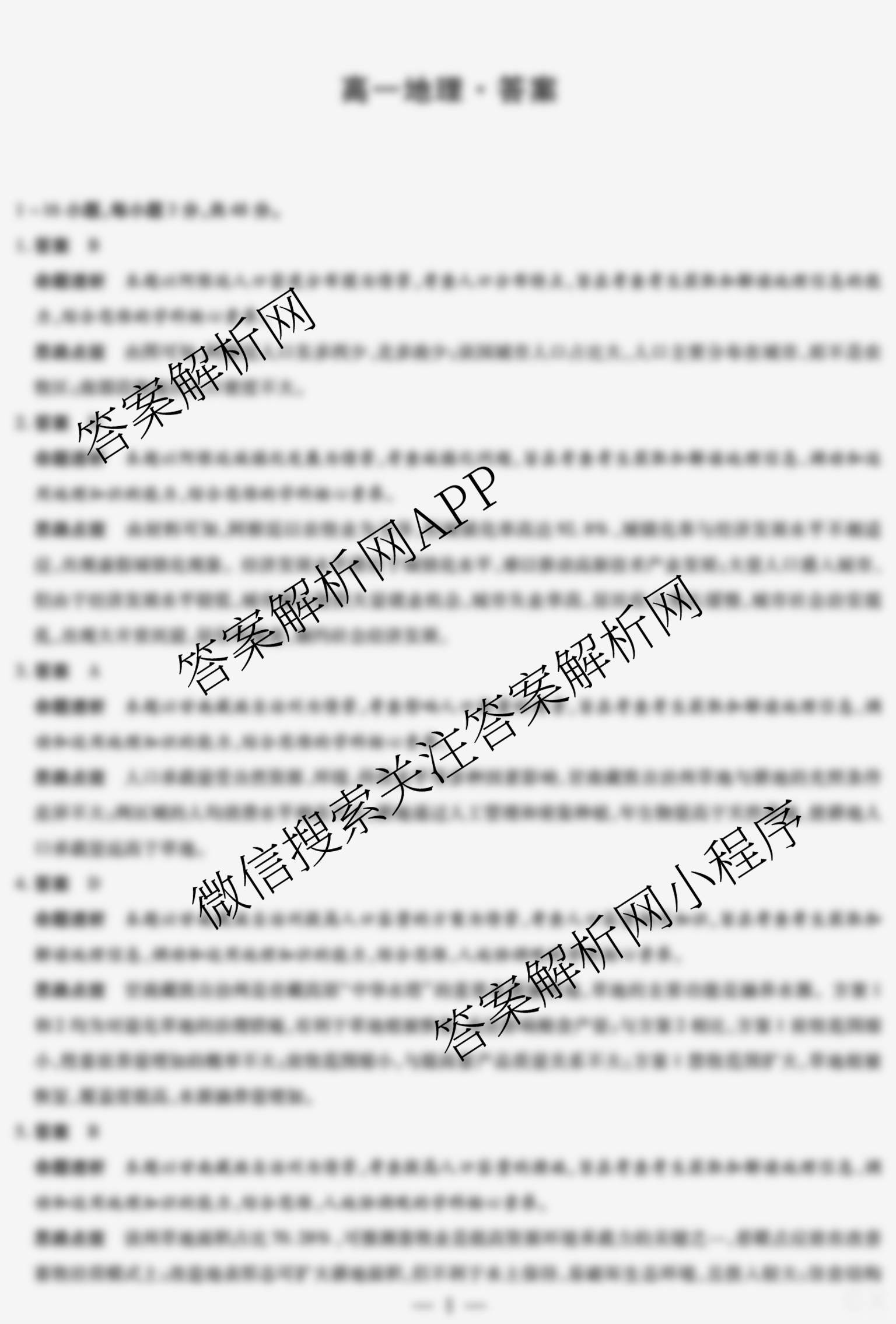 [天一大联考]湖南省2025年[高一]年级3月联考地理答案