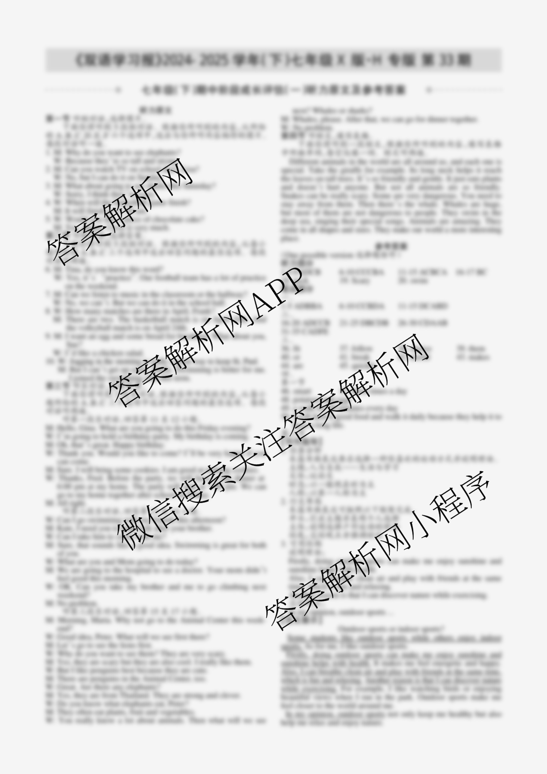 2024-2025学年下学期 双语学习报 七年级 X版H专版第33期答案