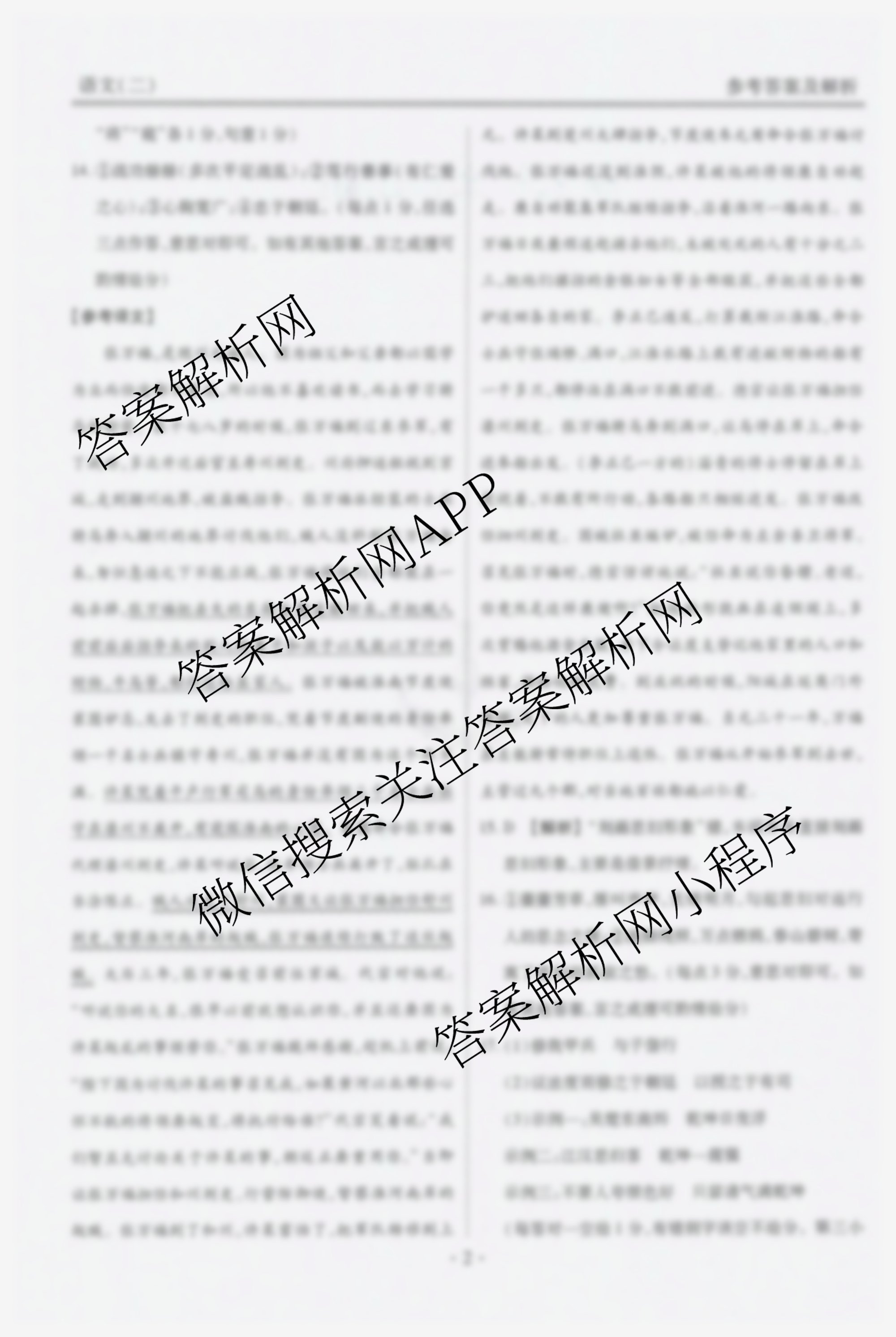 - [高三](衡水金卷先享题)压轴卷 2025年普通高等学校招生全国统一考试模拟试题(二)2语文答案