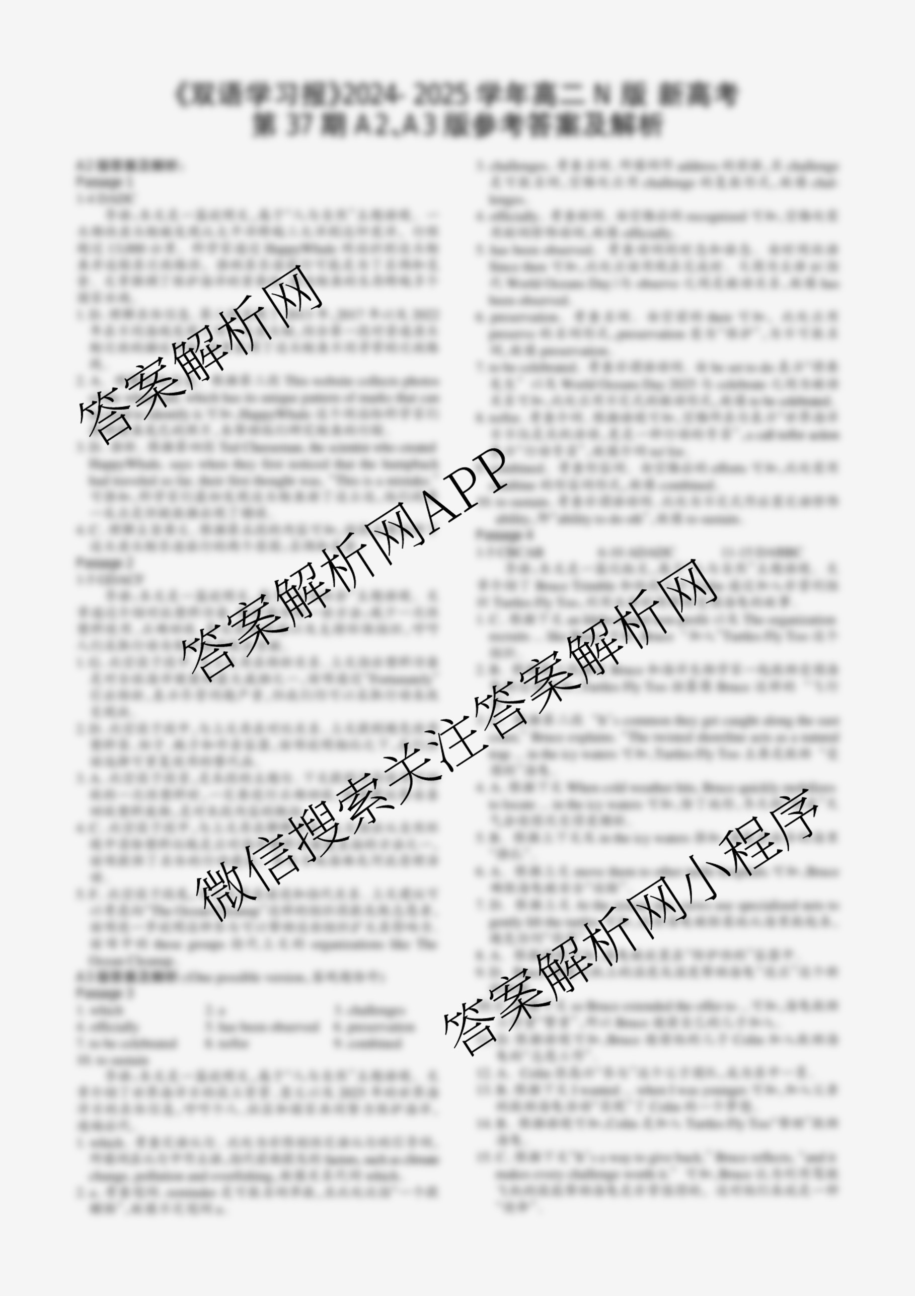2024-2025学年下学期 双语学习报 高二 N版新高考第37期答案