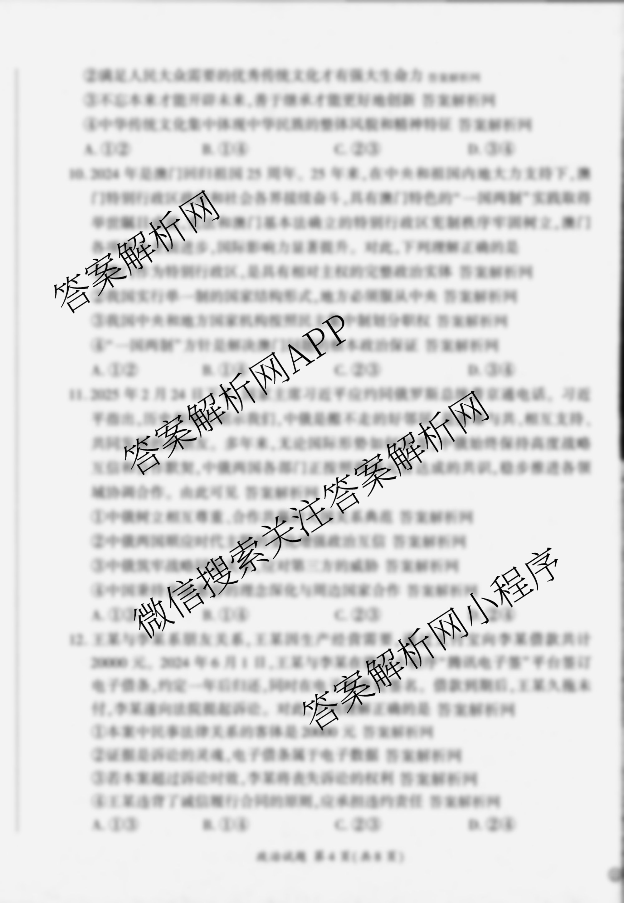 - (百师联盟)2025届[高三]信息押题卷(三)3政治(百G)答案