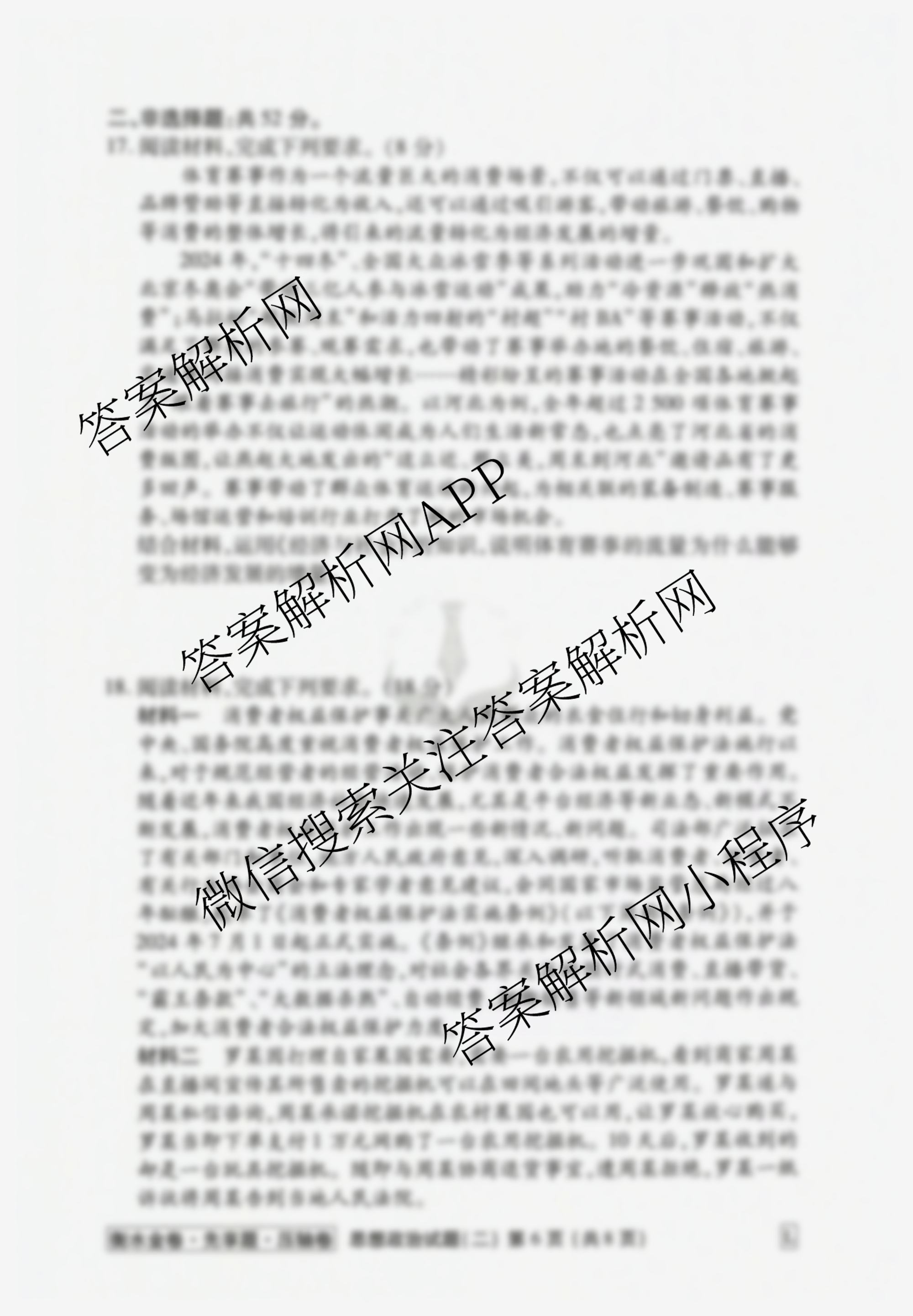 - [高三]衡水金卷先享题压轴卷 2025年普通高中学业水平选择性考试模拟试题(二)2政治(GX)答案