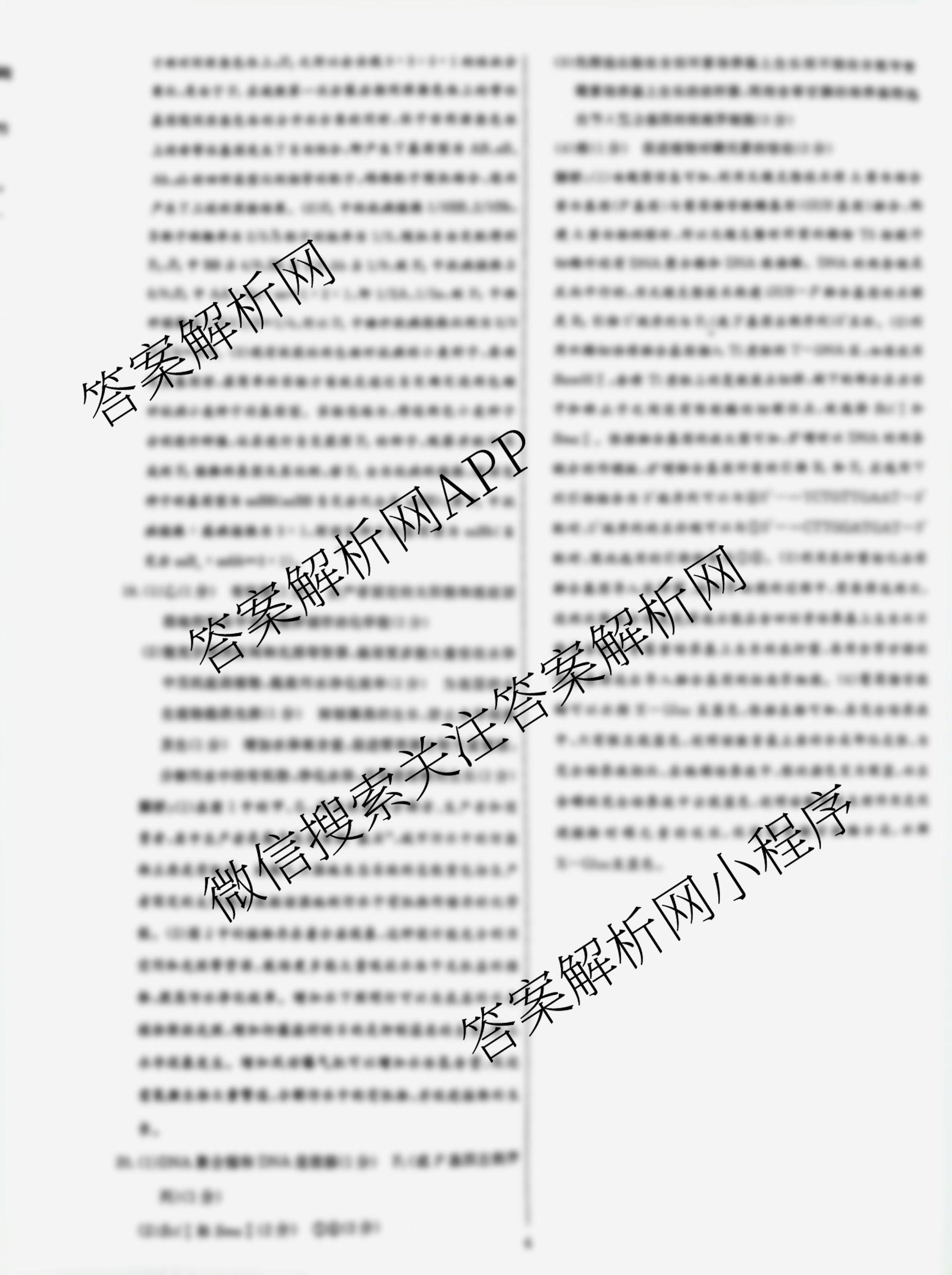 - (黄冈八模)2025届[高三]生物模拟测试卷(二)2生物(重庆)答案