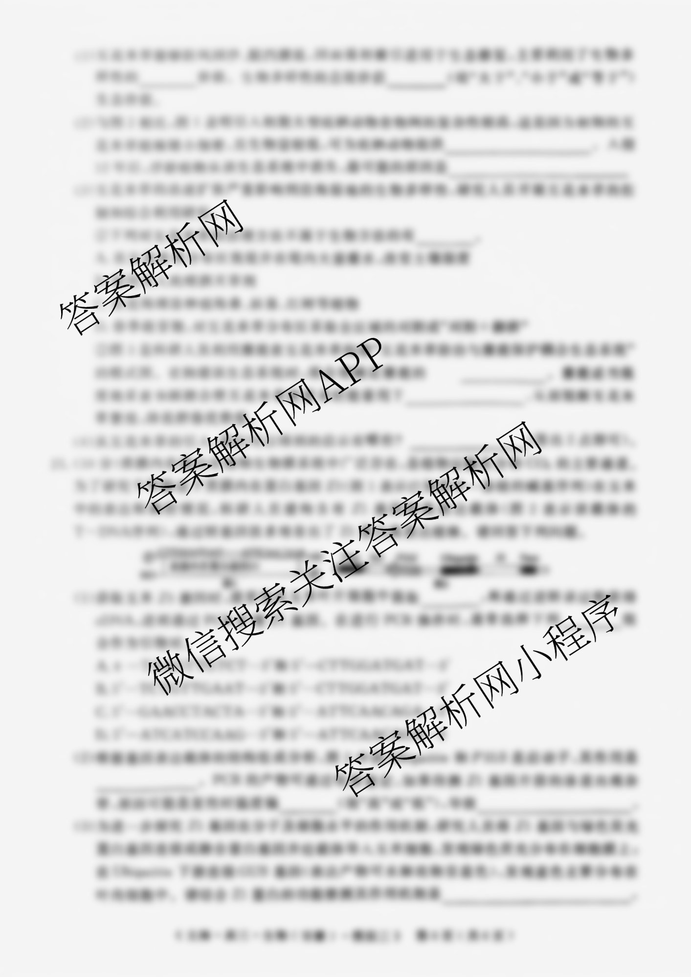 - [黄冈八模]2025届(高三)生物模拟测试卷(三)3生物(甘肃)答案