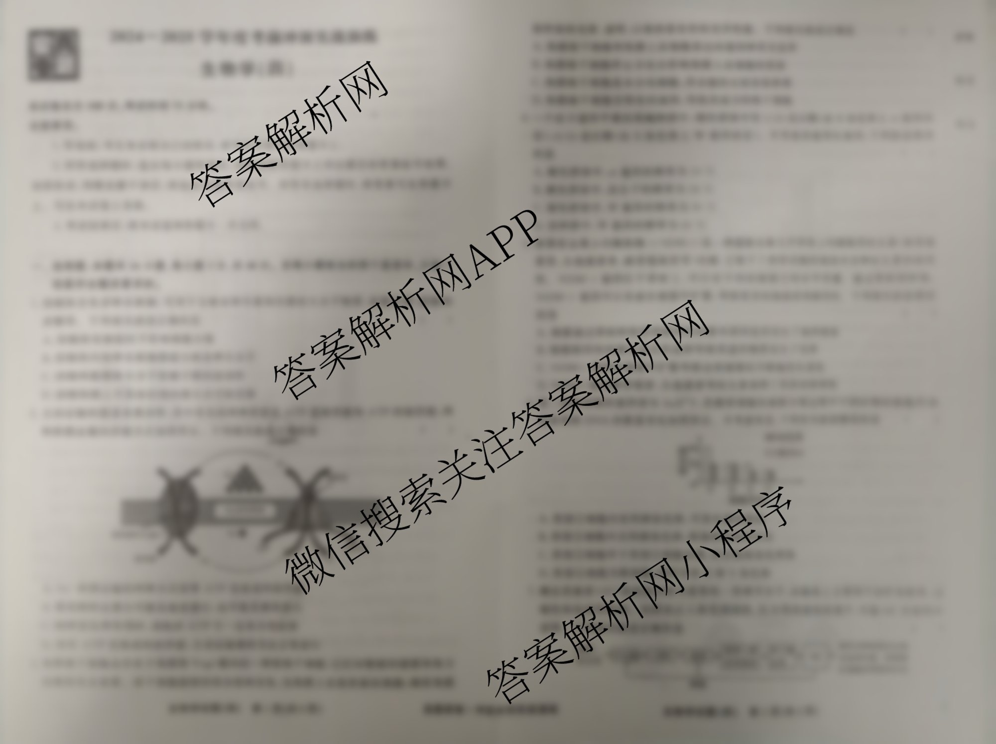 真题密卷2024-2025学年度考前冲顶实战演练(四)4生物(1)试题