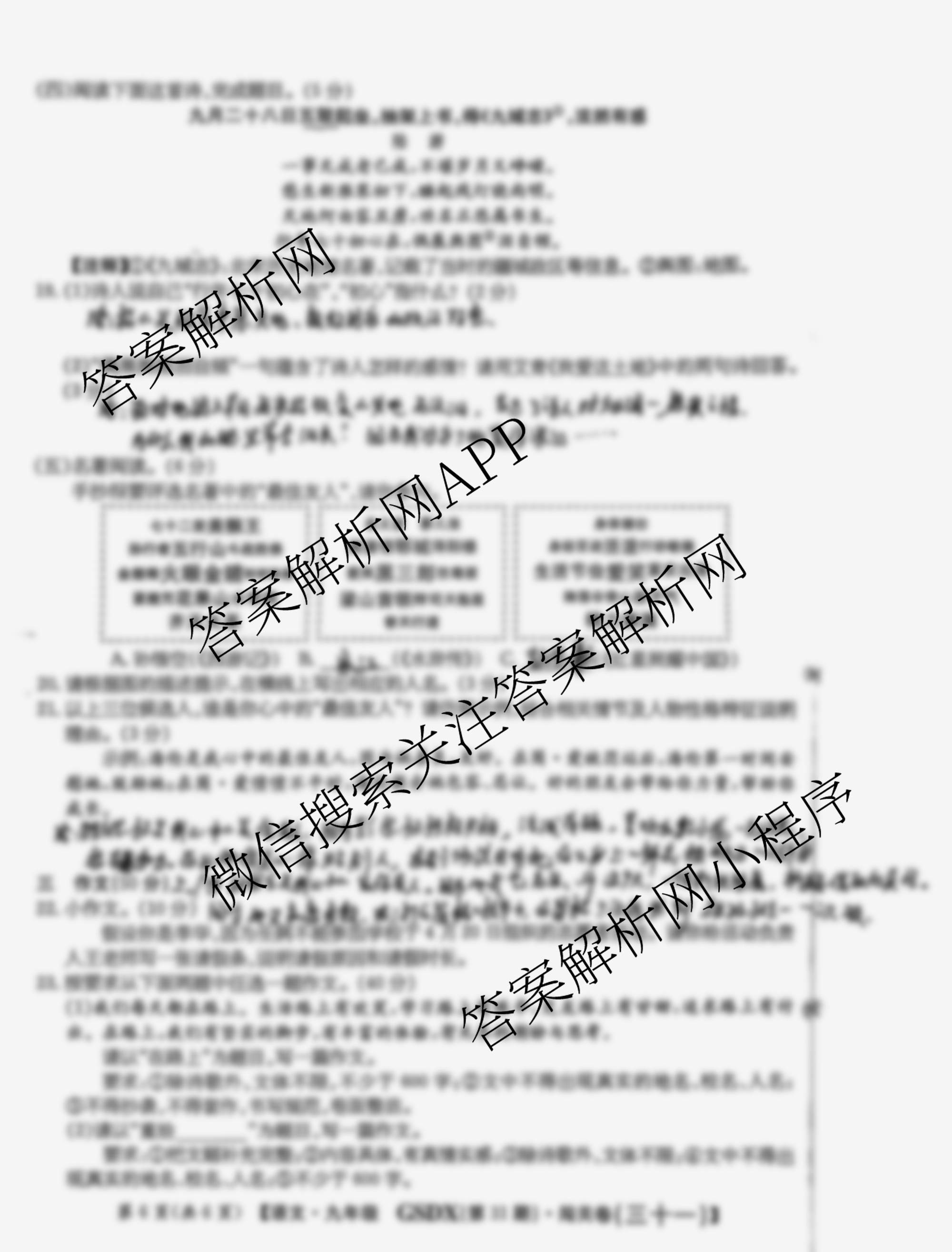 2024-2025 闯关卷 九年级 (三十一)31语文(GSDX)试题,目前学英语报答案已经汇总了2024-2025 闯关卷 九年级 (三十一)31语文(GSDX)试题的各科答案和试卷,获取更多闯关卷答案解析,请在关注本站。