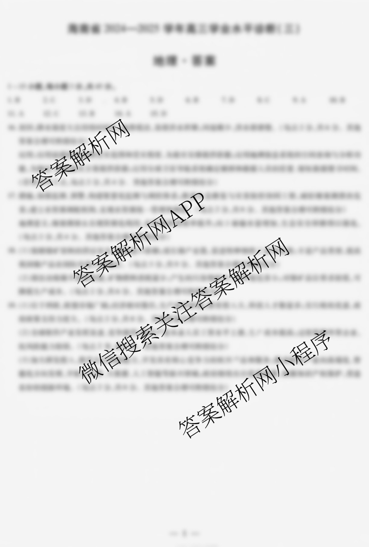 - 2024~2025海南省学年高三学业水平诊断(三)地理答案