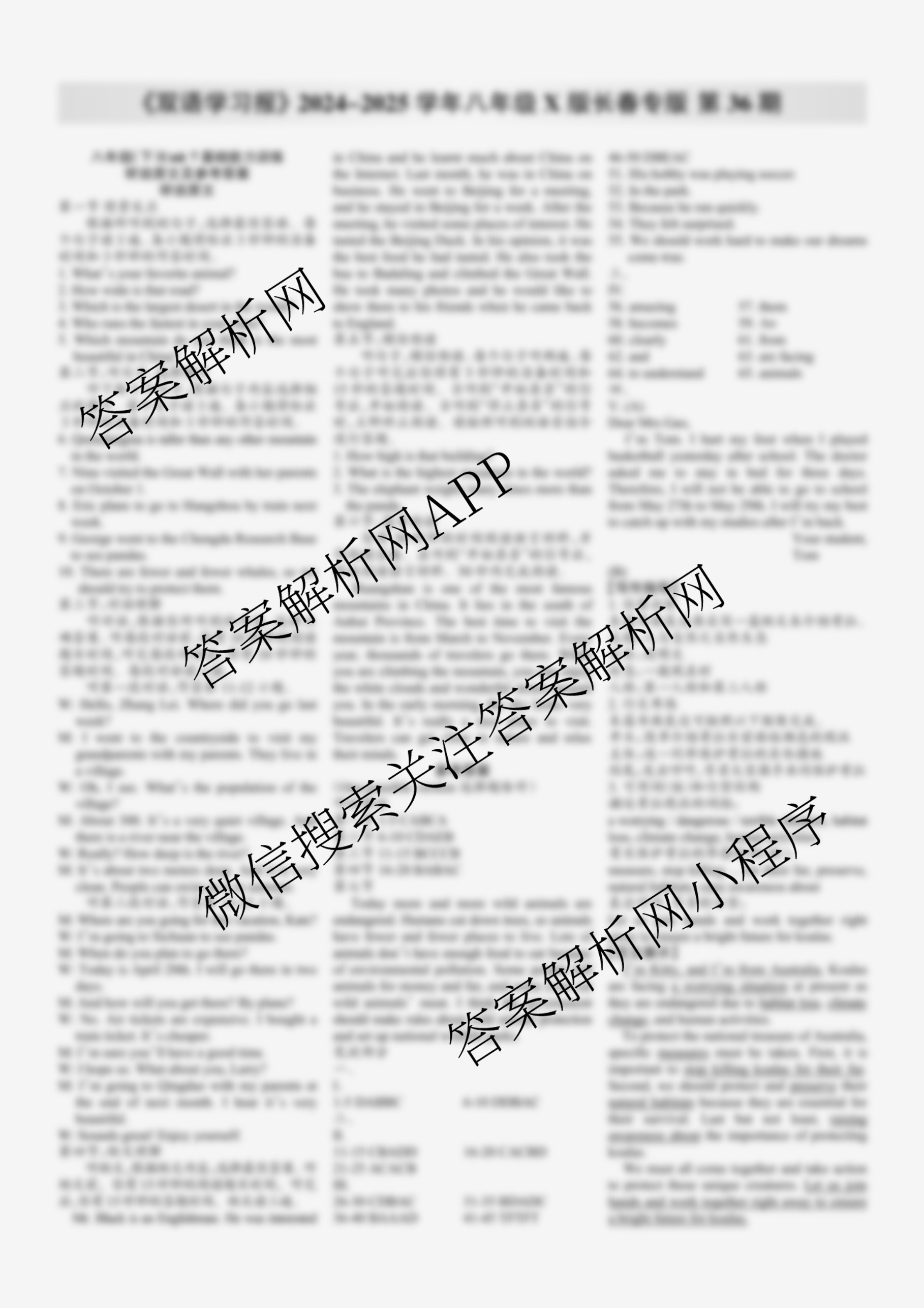 2024-2025学年下学期 双语学习报 八年级 X版·长春专版第36期答案,目前学英语报答案已经汇总了2024-2025学年下学期 双语学习报 八年级 X版·长春专版第36期答案的各科答案和试卷,获取更多学生双语报答案解析,请在关注本站。