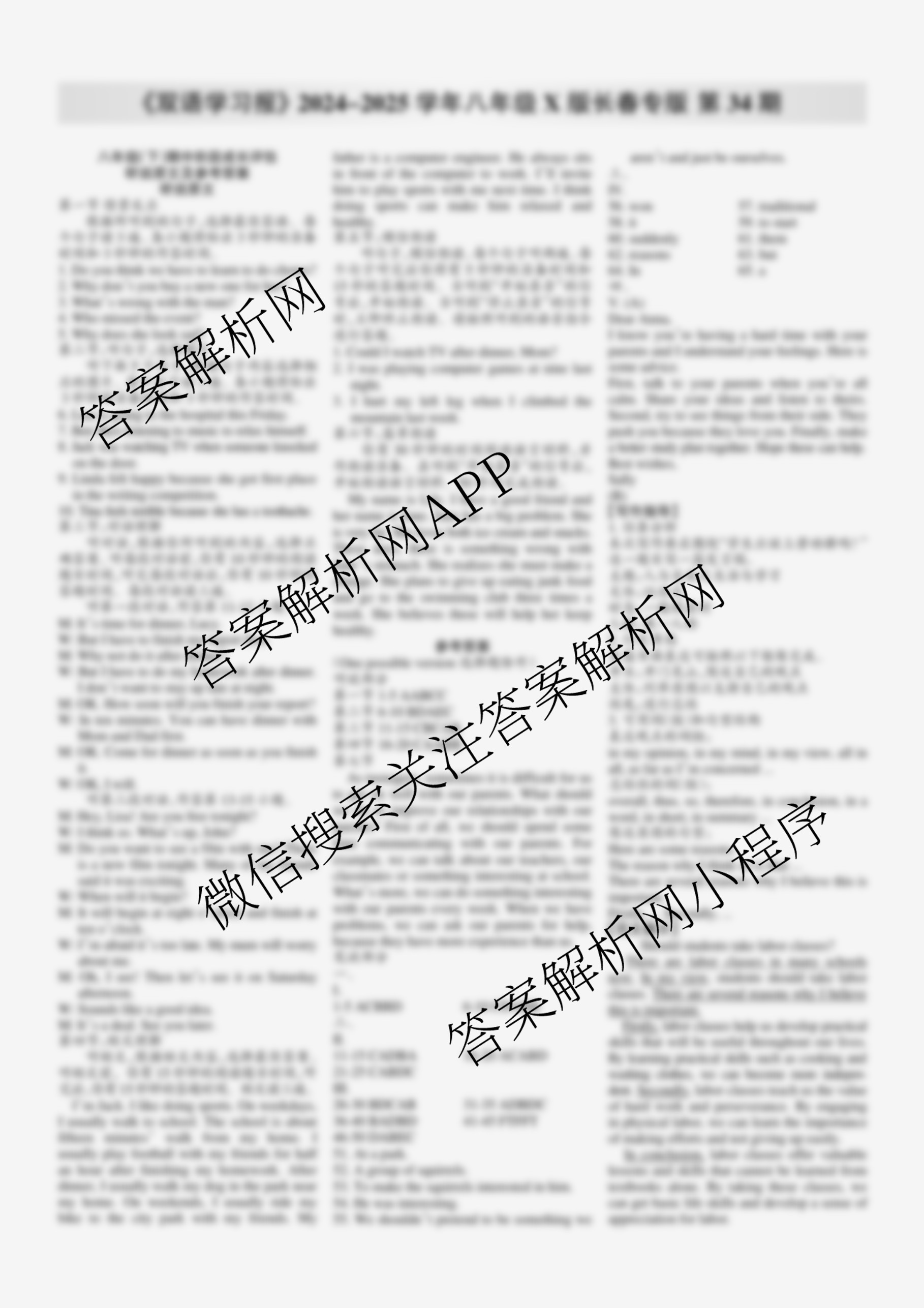 2024-2025学年下学期 双语学习报 八年级 X版·长春专版第34期答案,目前学英语报答案已经汇总了2024-2025学年下学期 双语学习报 八年级 X版·长春专版第34期答案的各科答案和试卷,获取更多学生双语报答案解析,请在关注本站。