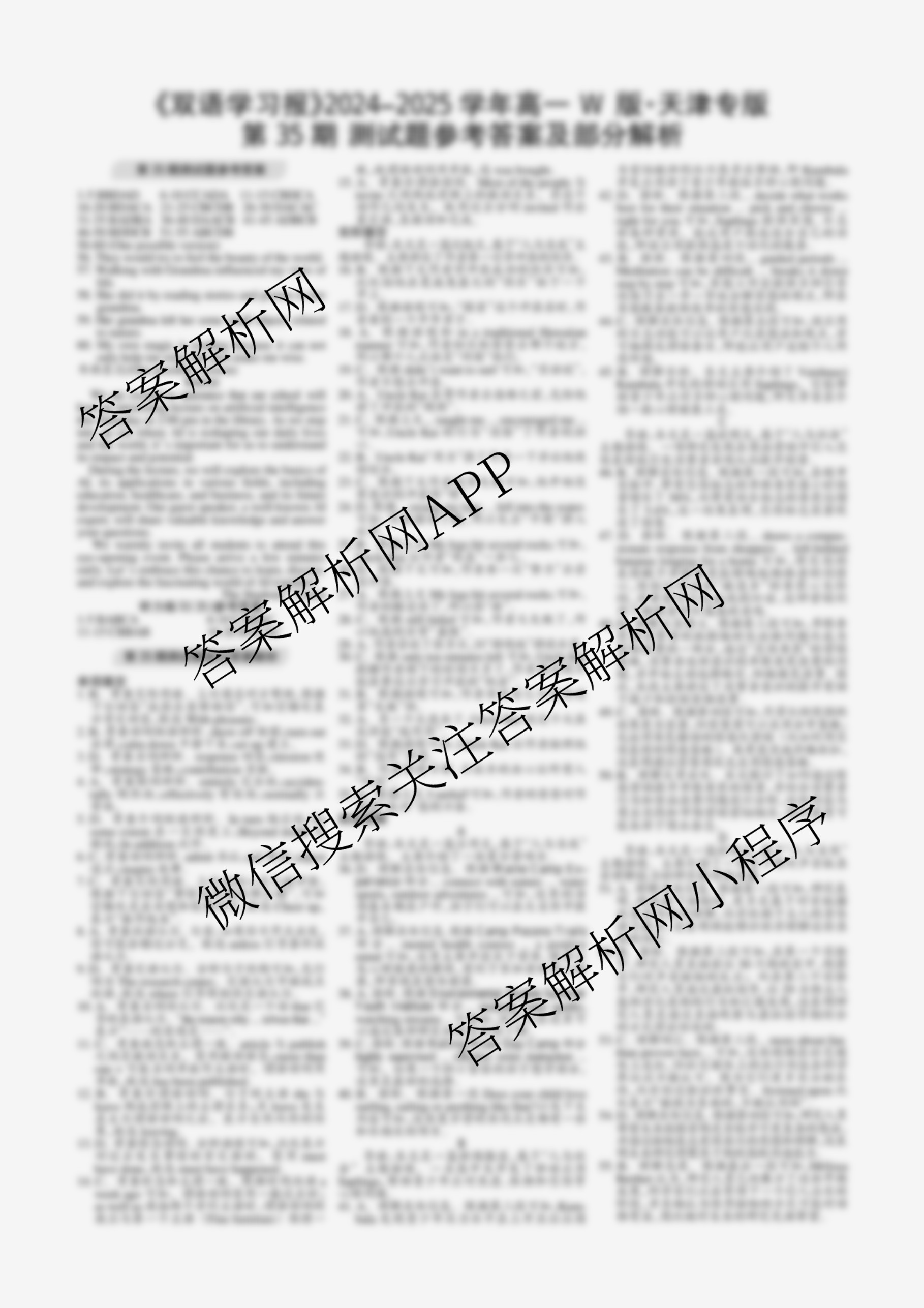 2024-2025学年下学期 双语学习报 高一 W版天津专版第35期答案