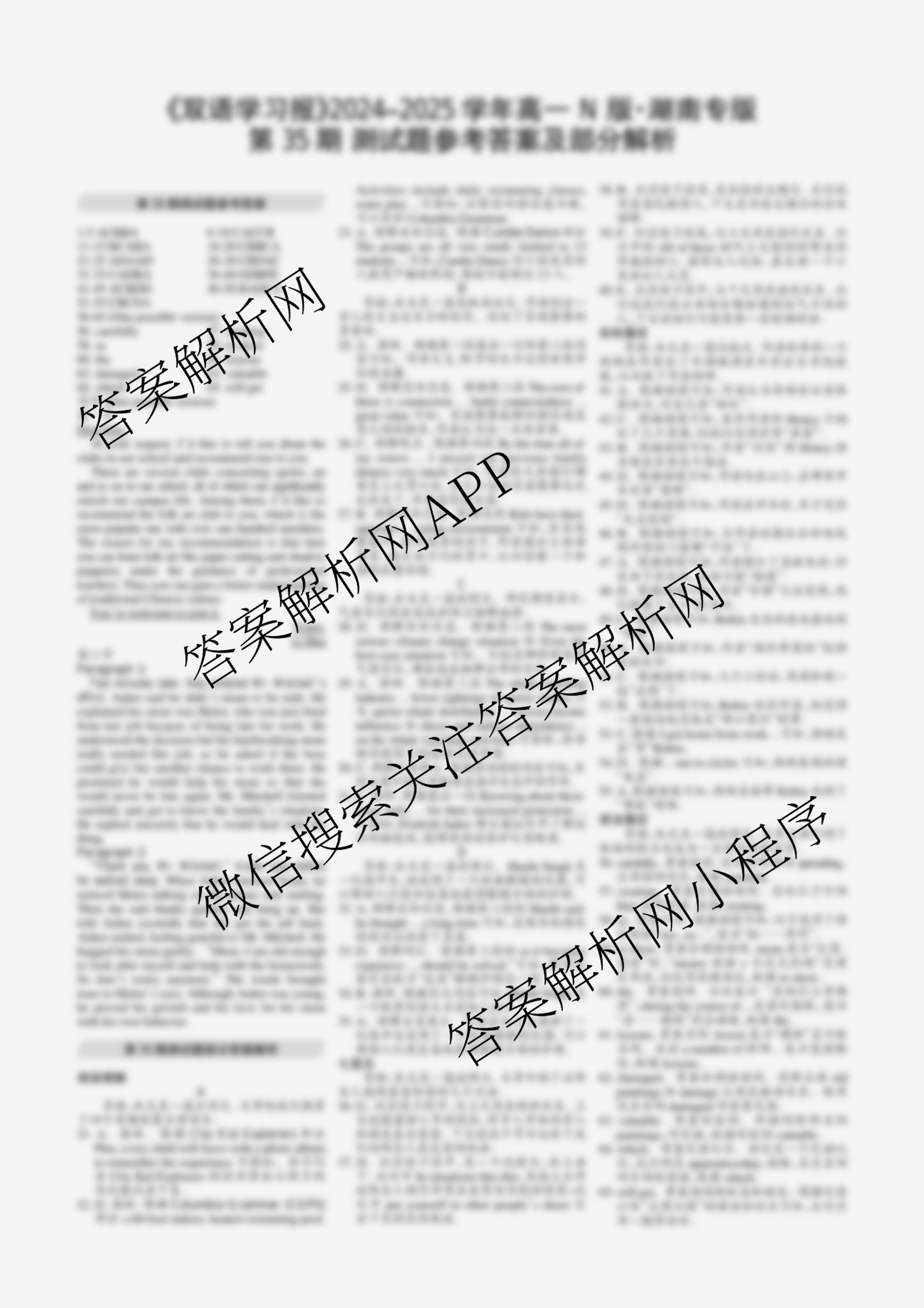 2024-2025学年下学期 双语学习报 高一 湖南专版第35期答案