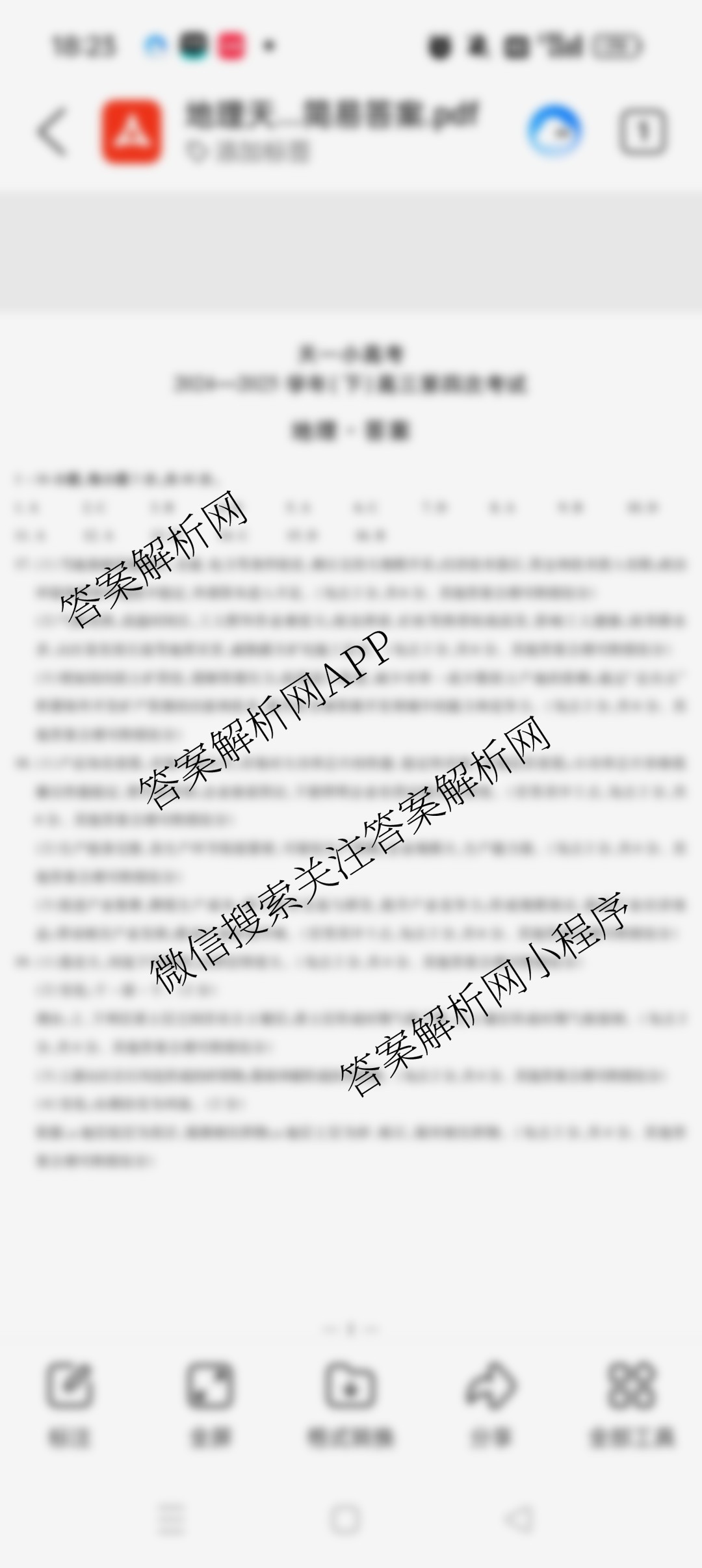 - 2024-2025[高三]天一小高考·学年(下)第四次考试地理(专版)答案