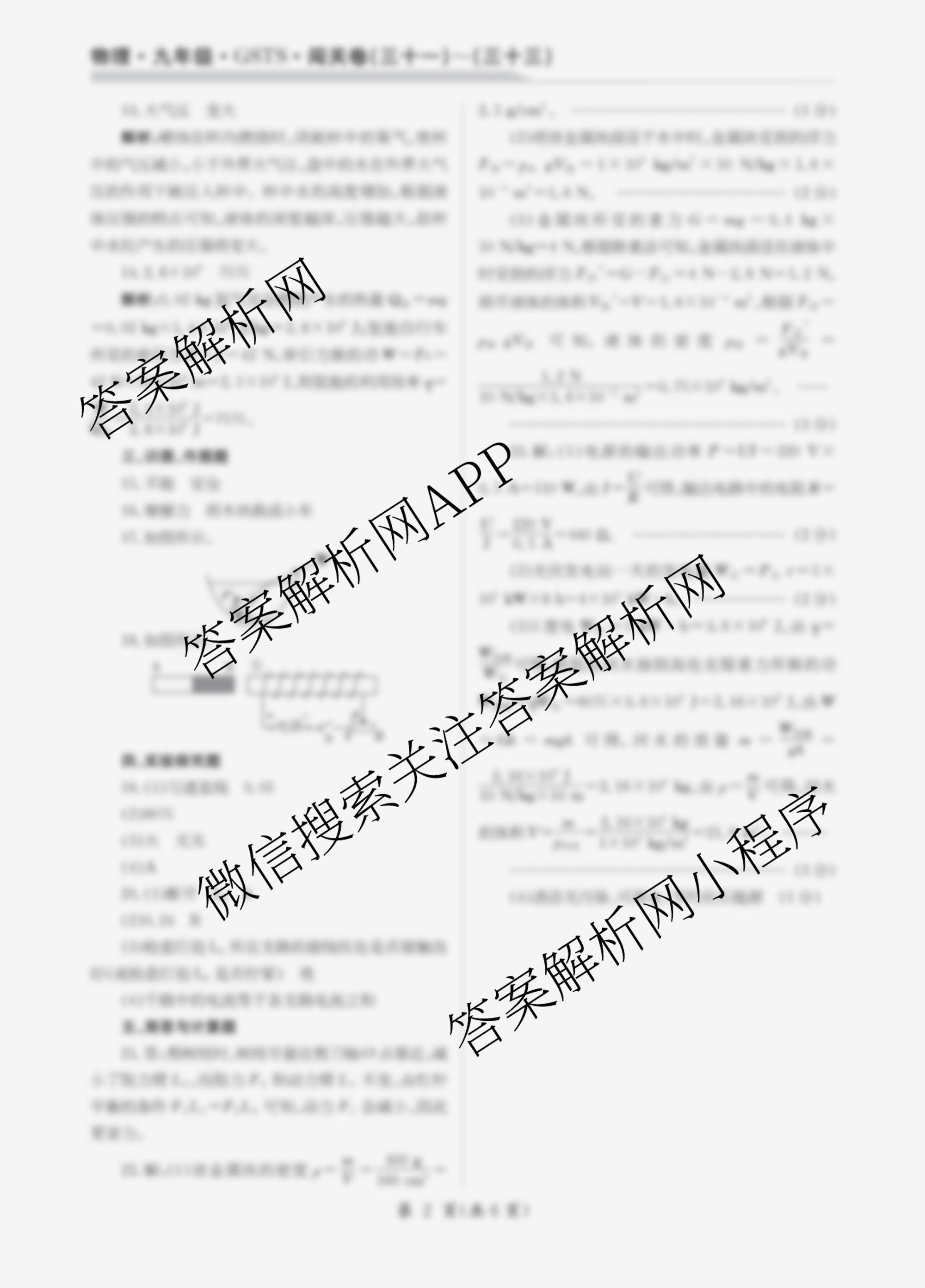 2024-2025 闯关卷 九年级 物理(GSTS)(三十一)31答案