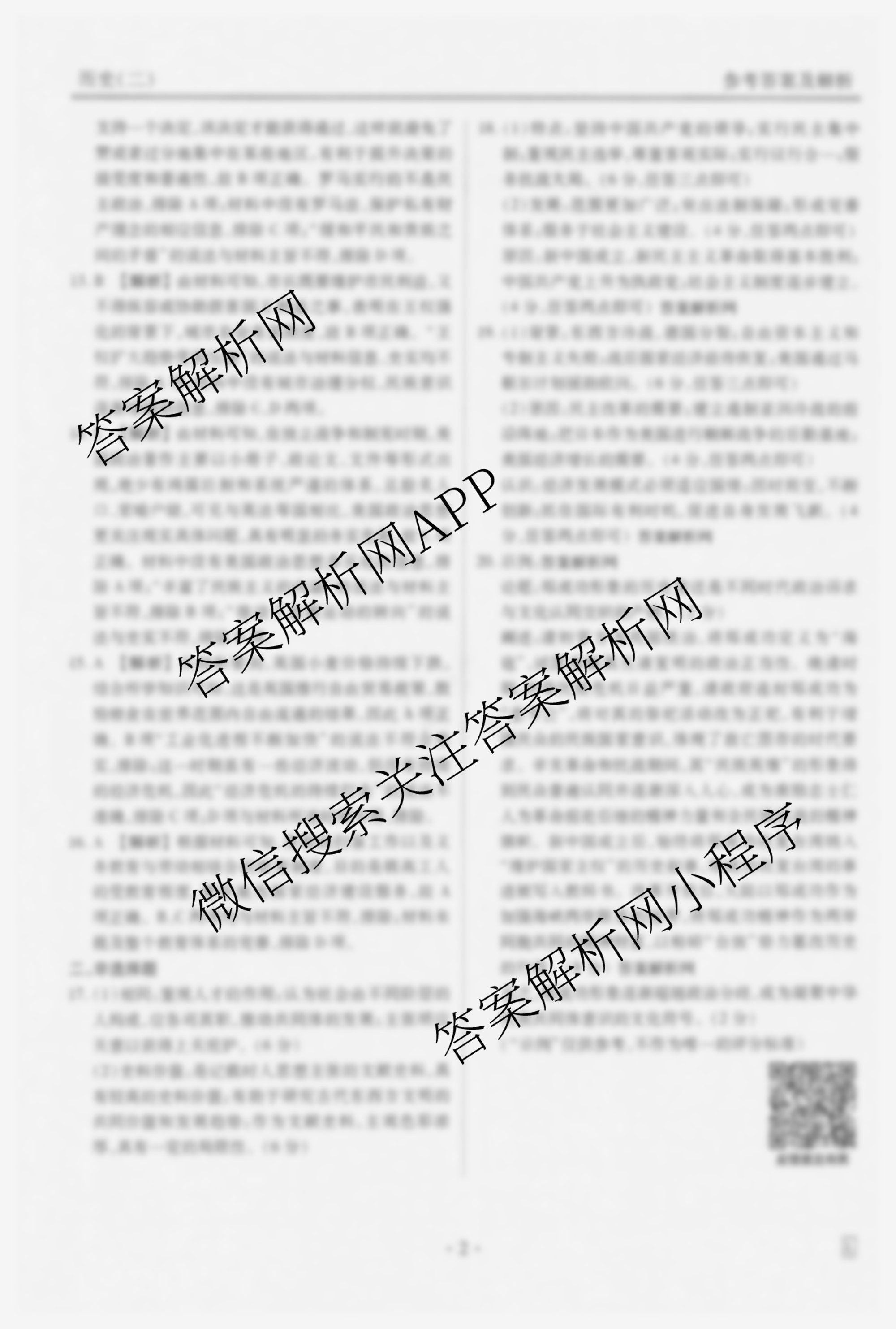 - (高三)衡水金卷先享题压轴卷 2025年普通高中学业水平选择性考试模拟试题(二)2历史(AH)答案