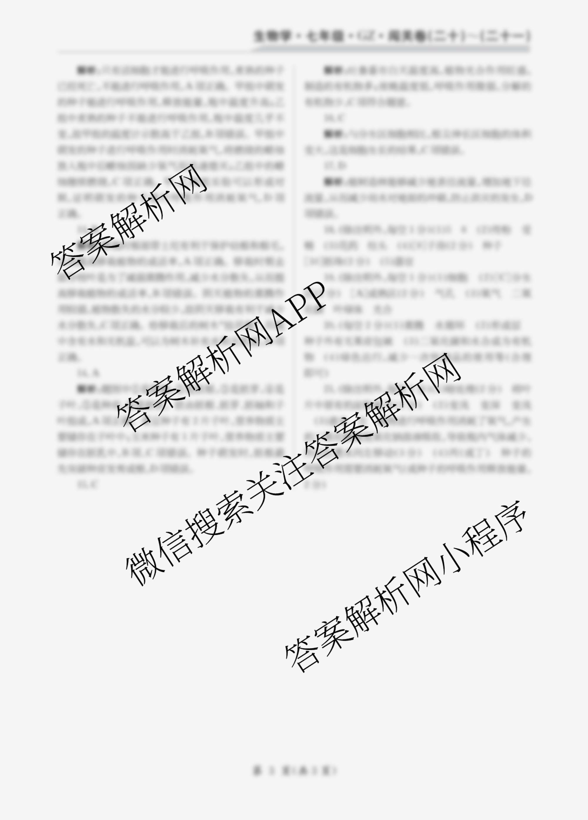 2024-2025 闯关卷 七年级 生物学(GZ)(二十一)21生物(GZ)答案