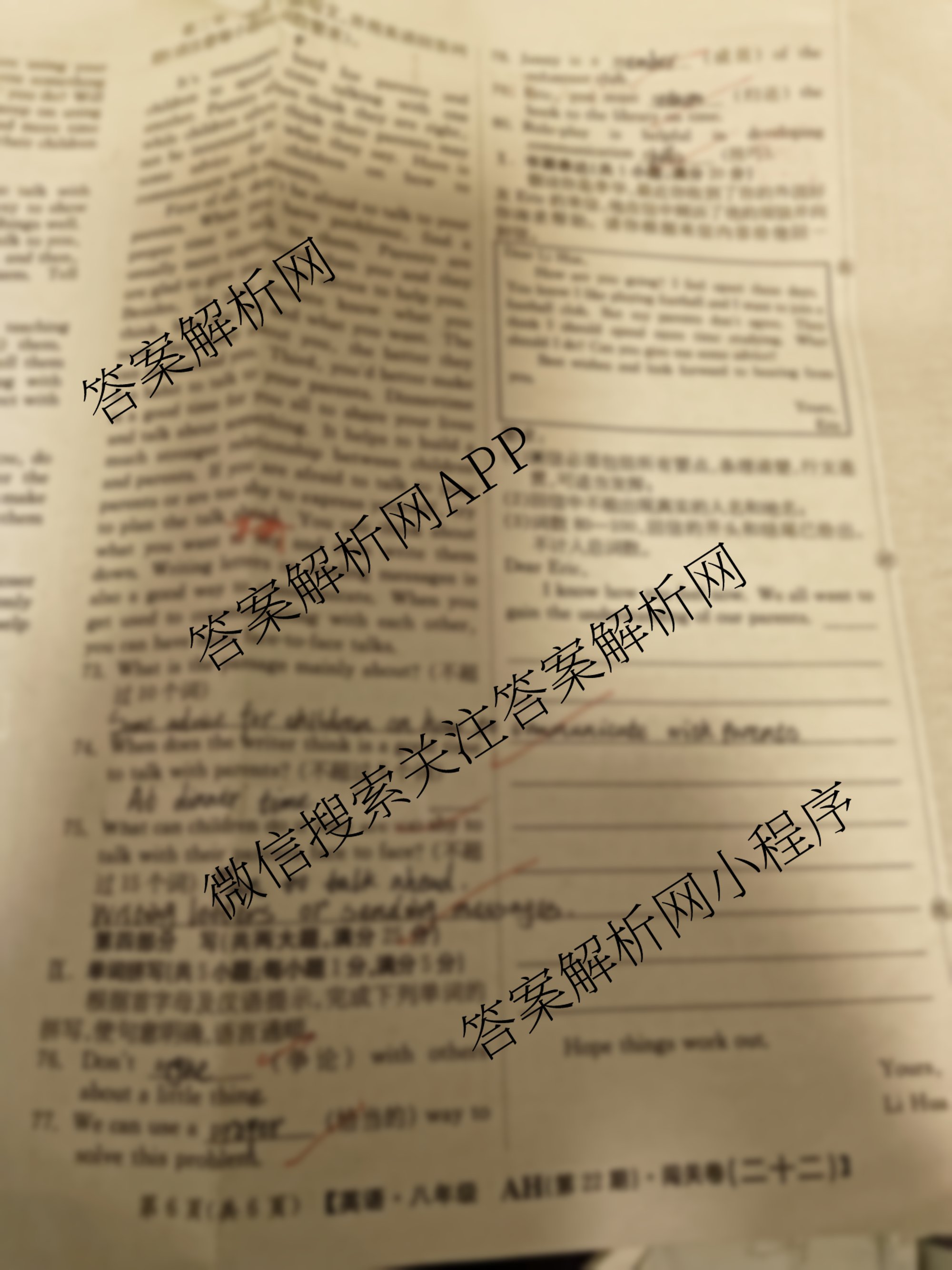 2024-2025 闯关卷 八年级 英语(AH)(二十二)22试题,目前学英语报答案已经汇总了2024-2025 闯关卷 八年级 英语(AH)(二十二)22试题的各科答案和试卷,获取更多闯关卷答案解析,请在关注本站。