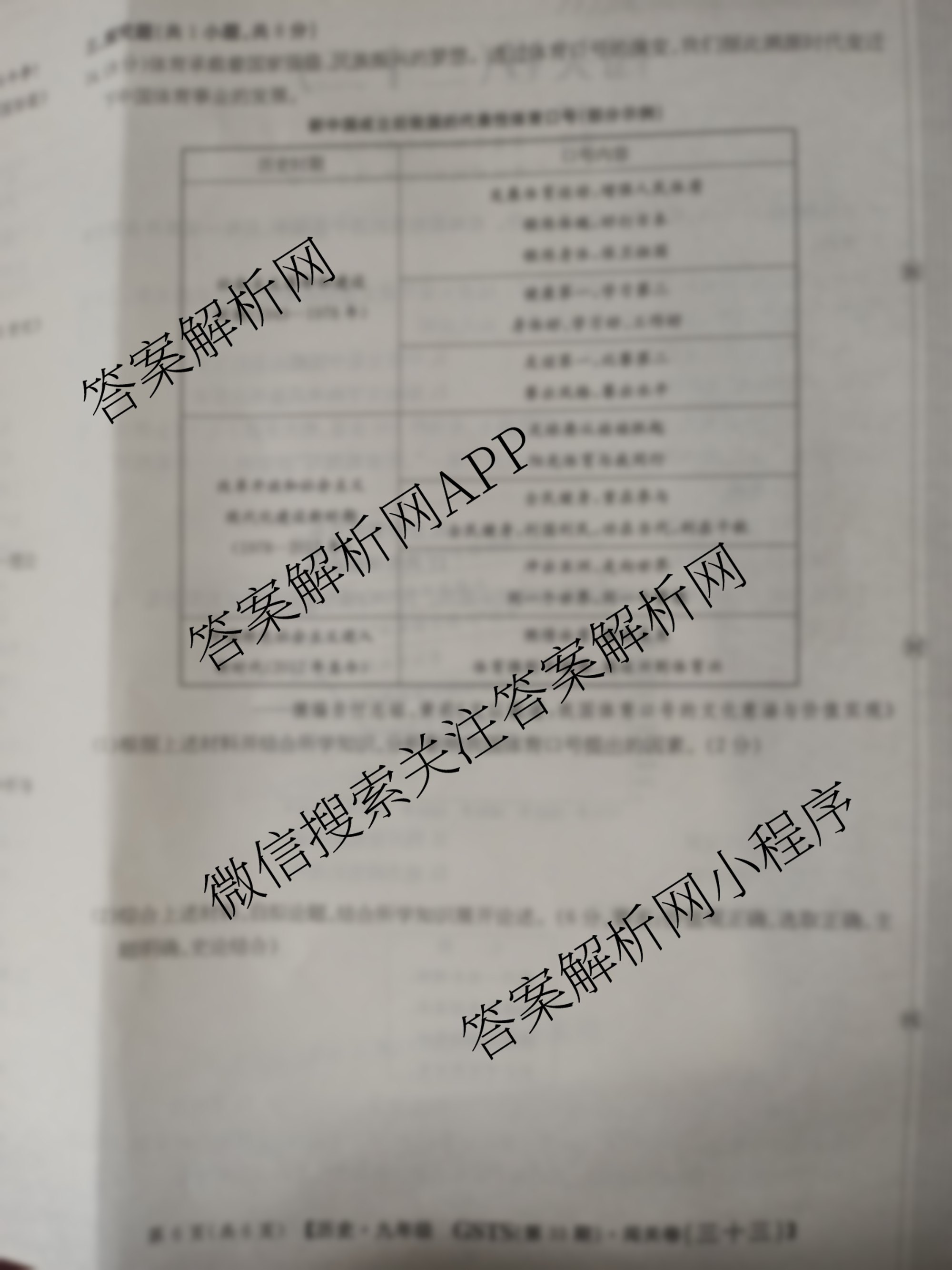 2024-2025 闯关卷 九年级 历史(GSTS)(三十三)33试题