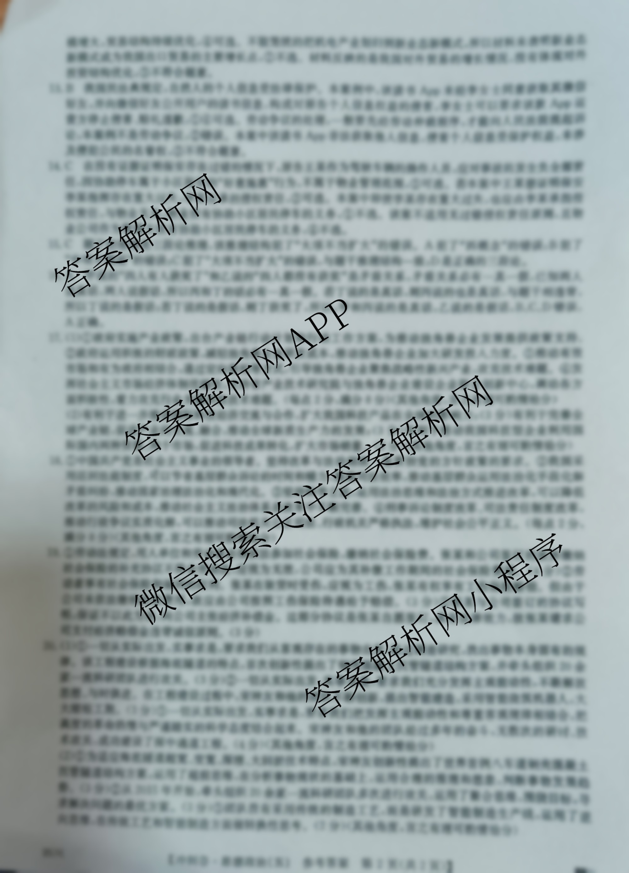 2025年四川省普通高中学业水平选择性考试冲刺压轴卷(五)5政治(四川)答案