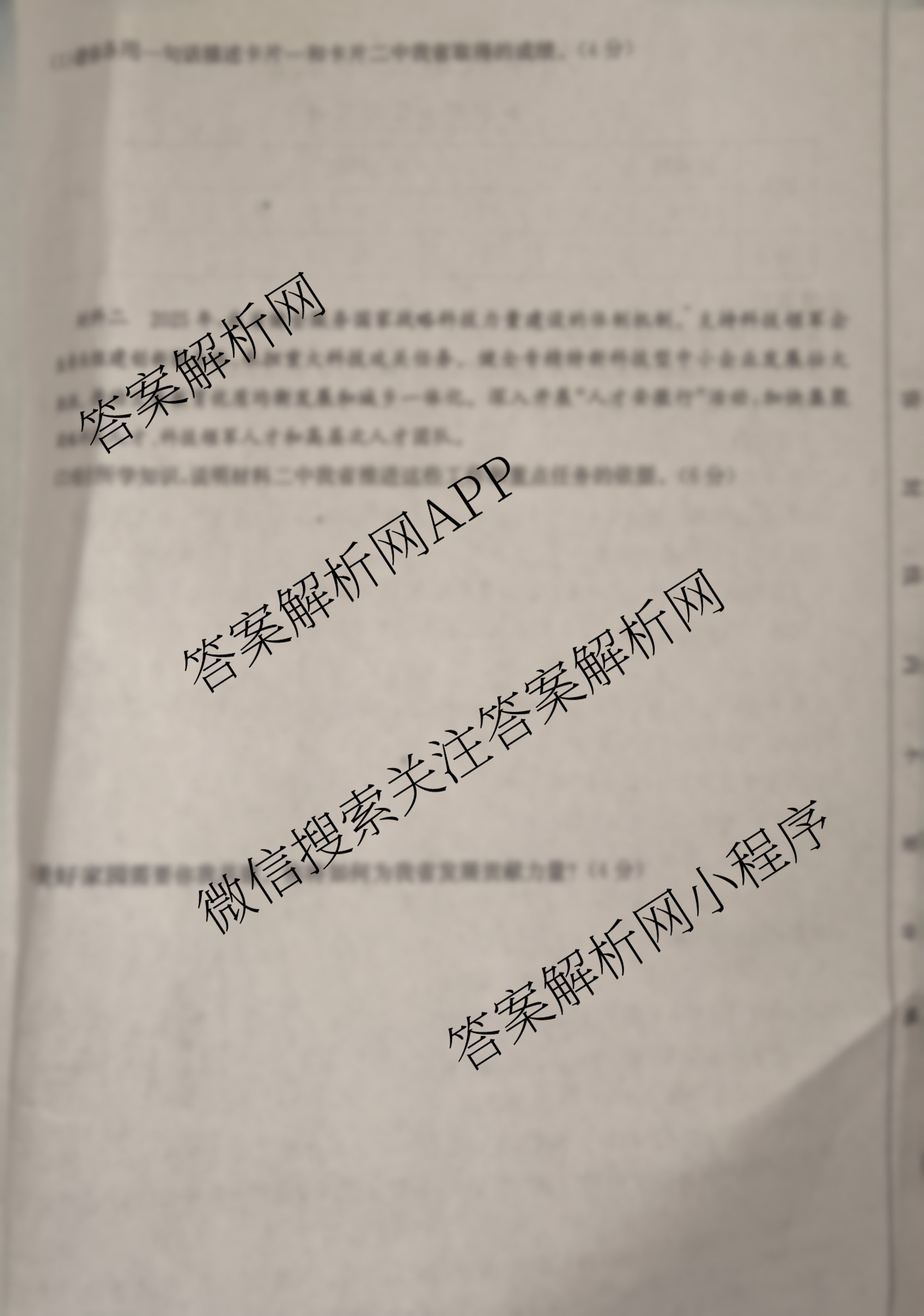 - [九年级]安徽省2025届阶段评估(无标题)[AH(7)]道德与法治(R)答案