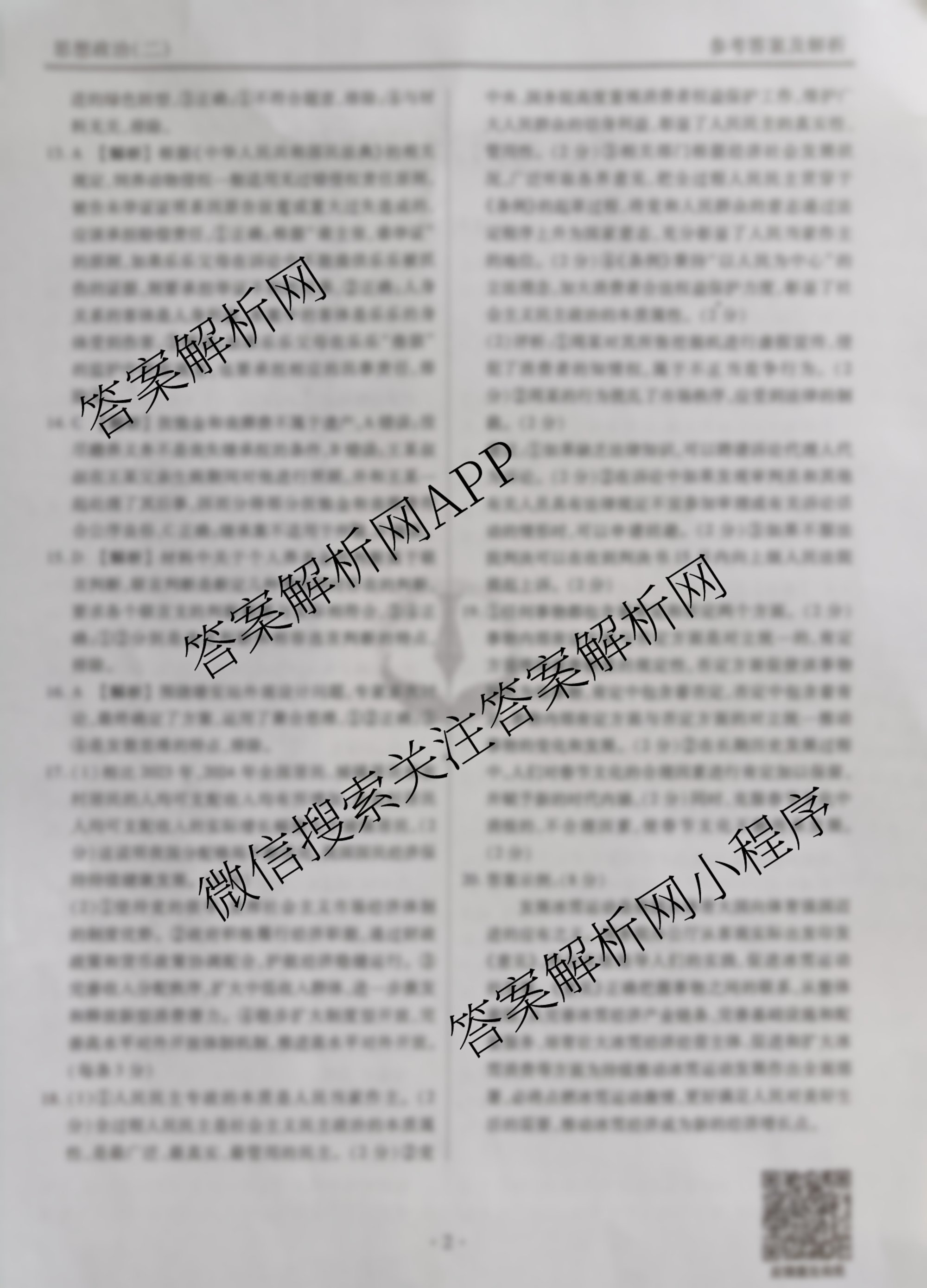 - (高三)(衡水金卷先享题)压轴卷 2025年普通高中学业水平选择性考试模拟试题(二)2政治(Q)答案