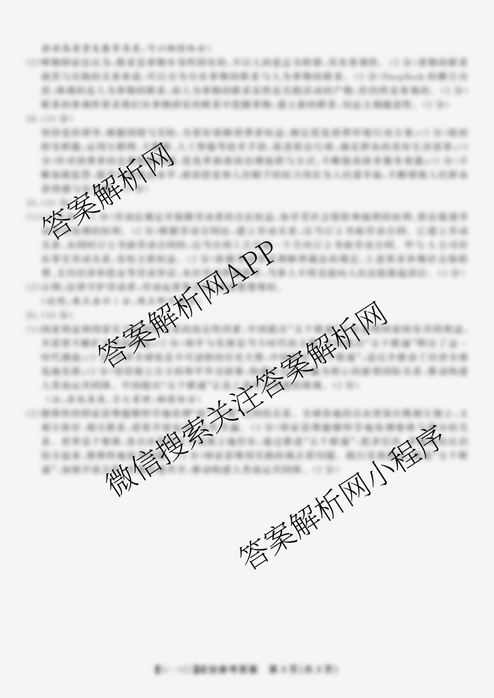- 2025届高三皖江名校联盟决战高考最后一卷[G-025]政治答案