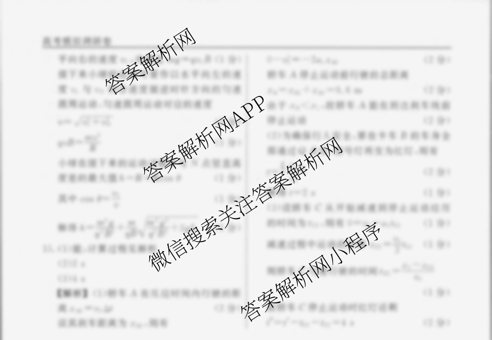 衡水名师卷高考模拟调研卷 2025年普通高等学校招生全国统一考试模拟(三)3物理(空心菱形)答案