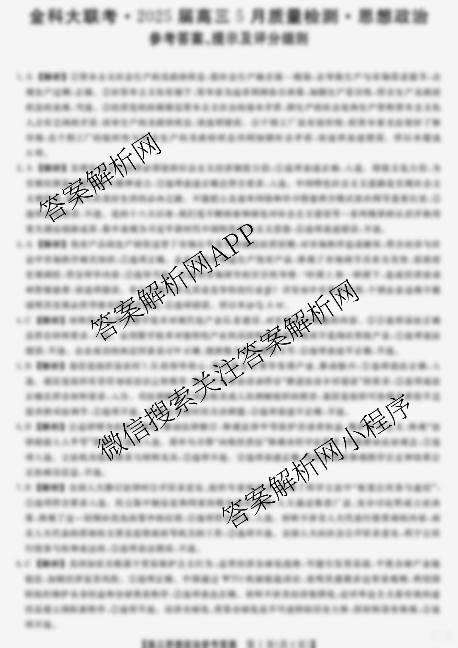 - 2025年普通高等学校全国统一模拟招生考试金科新未来5月联考(HN)政治答案