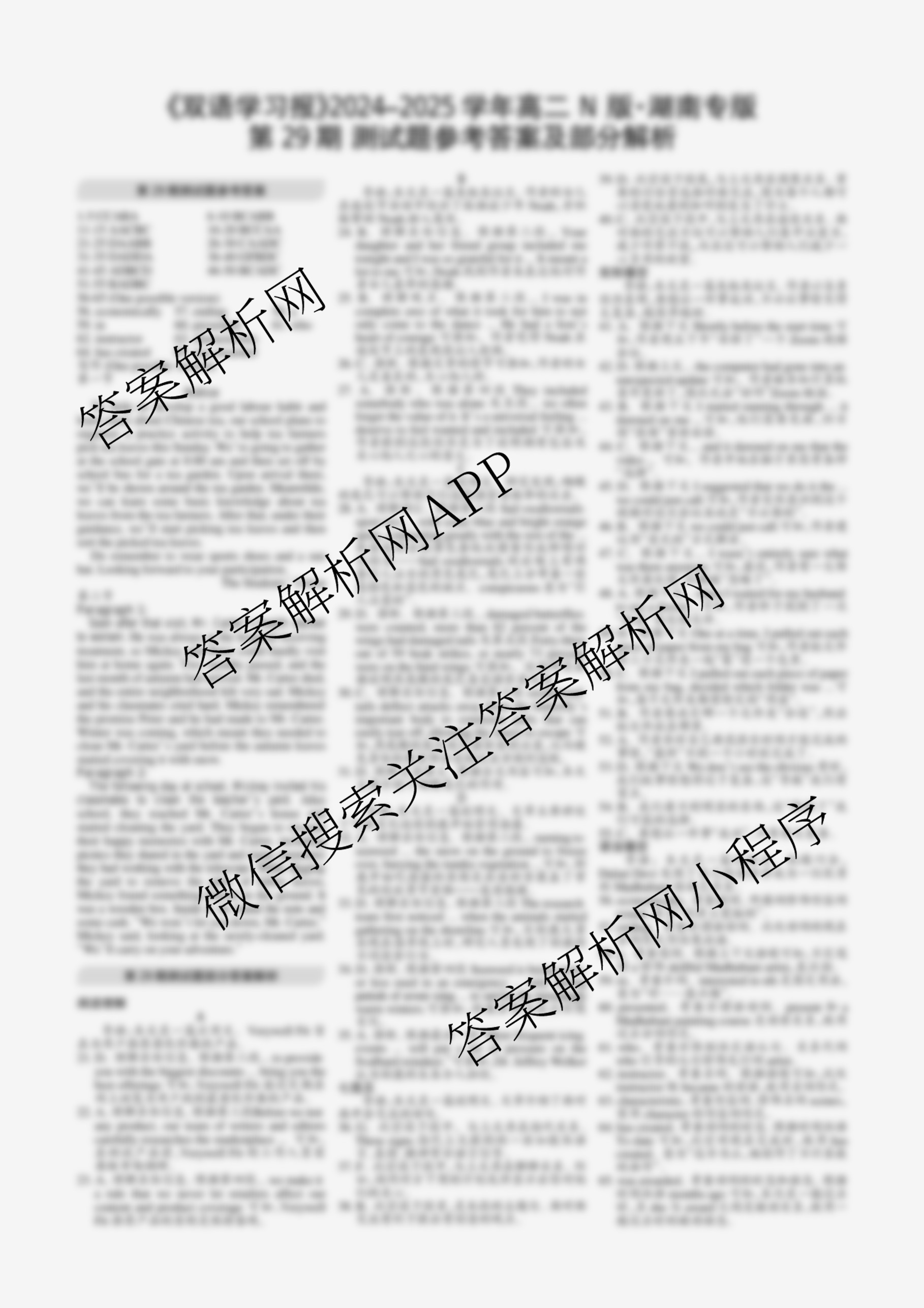2024-2025学年下学期 双语学习报 高二 湖南专版第29期答案