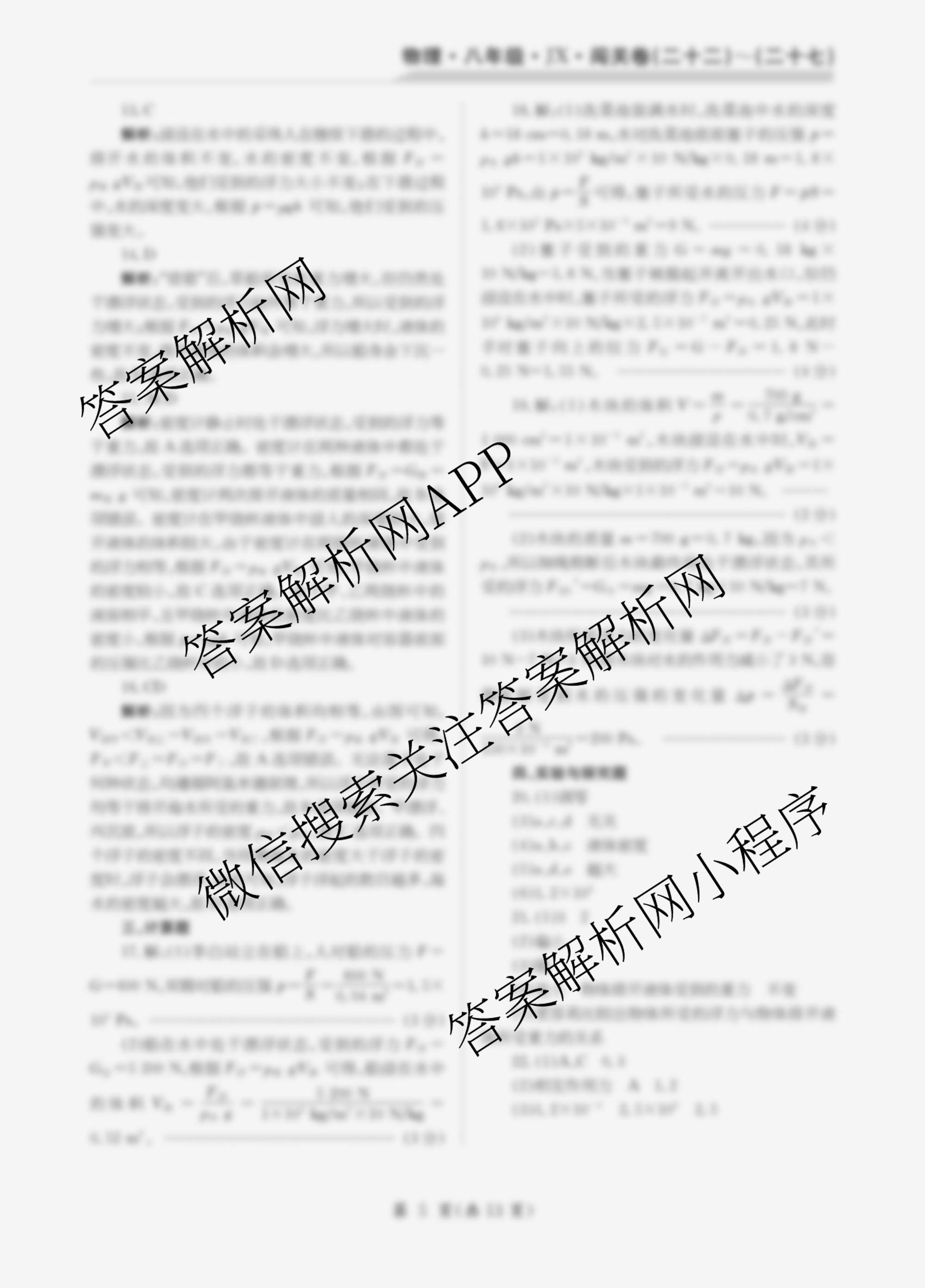 2024-2025 闯关卷 八年级 (二十三)23物理(JX)答案