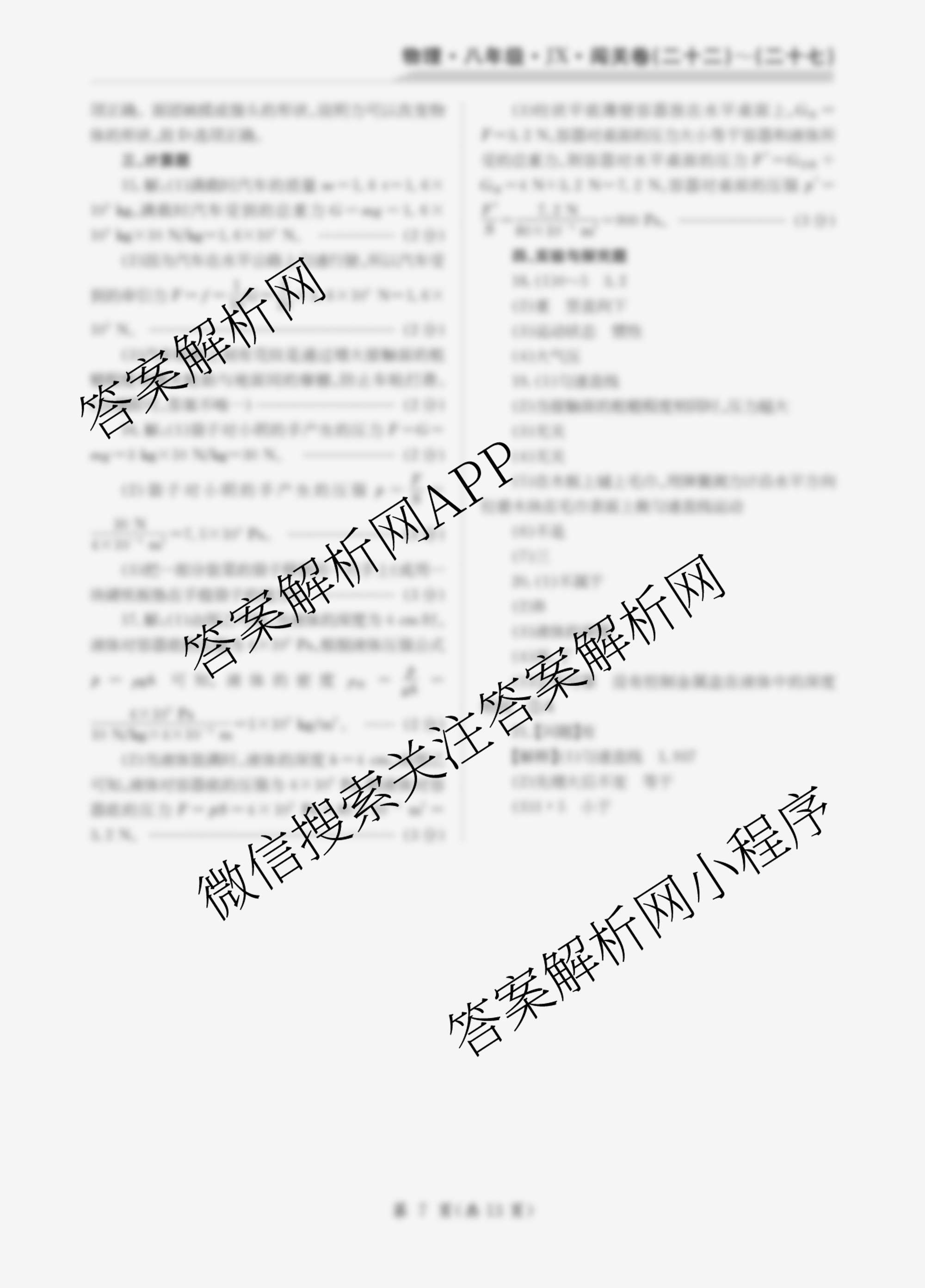2024-2025 闯关卷 八年级 (二十四)24物理(JX)答案
