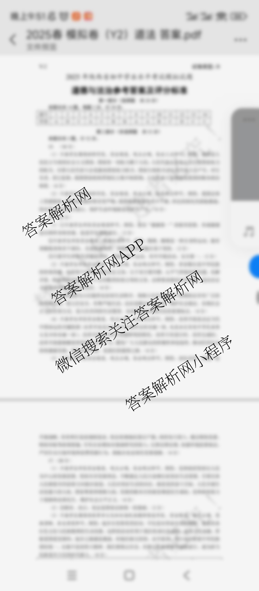 - [九年级]Y-2·2025年(陕西省初中学业水平考试模拟试题)[试卷类型B]道德与法治答案