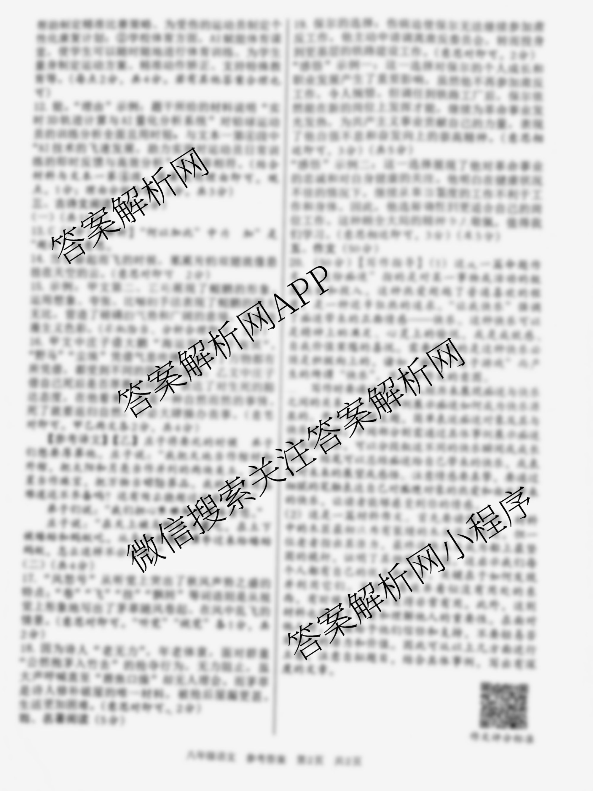 2024~2025(文博志鸿)·河南省学年[八年级]第二学期学情分析二语文(部编版)答案
