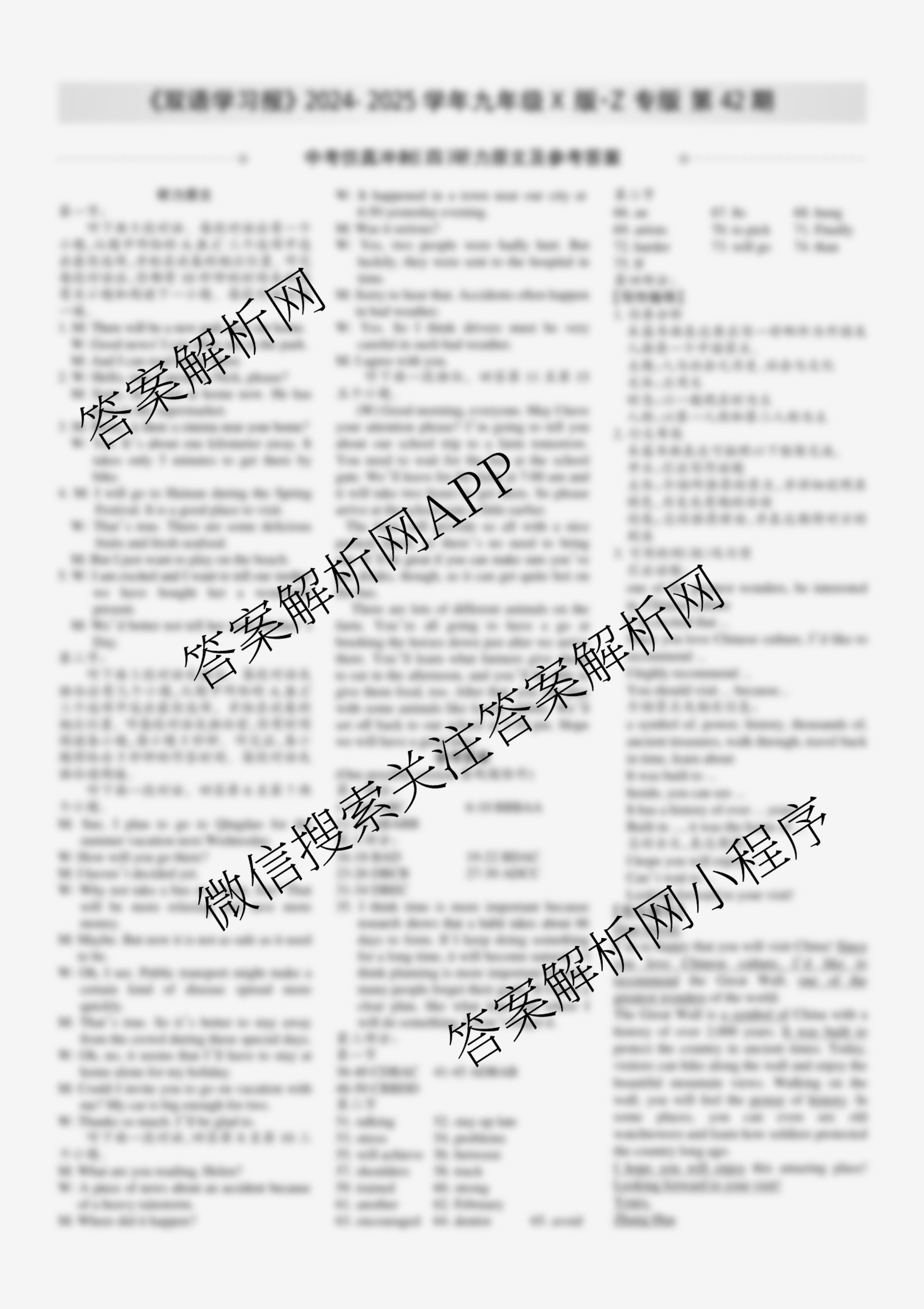 2024-2025学年下学期 双语学习报 九年级 X版·Z专版第42期答案,目前学英语报答案已经汇总了2024-2025学年下学期 双语学习报 九年级 X版·Z专版第42期答案的各科答案和试卷,获取更多学生双语报答案解析,请在关注本站。