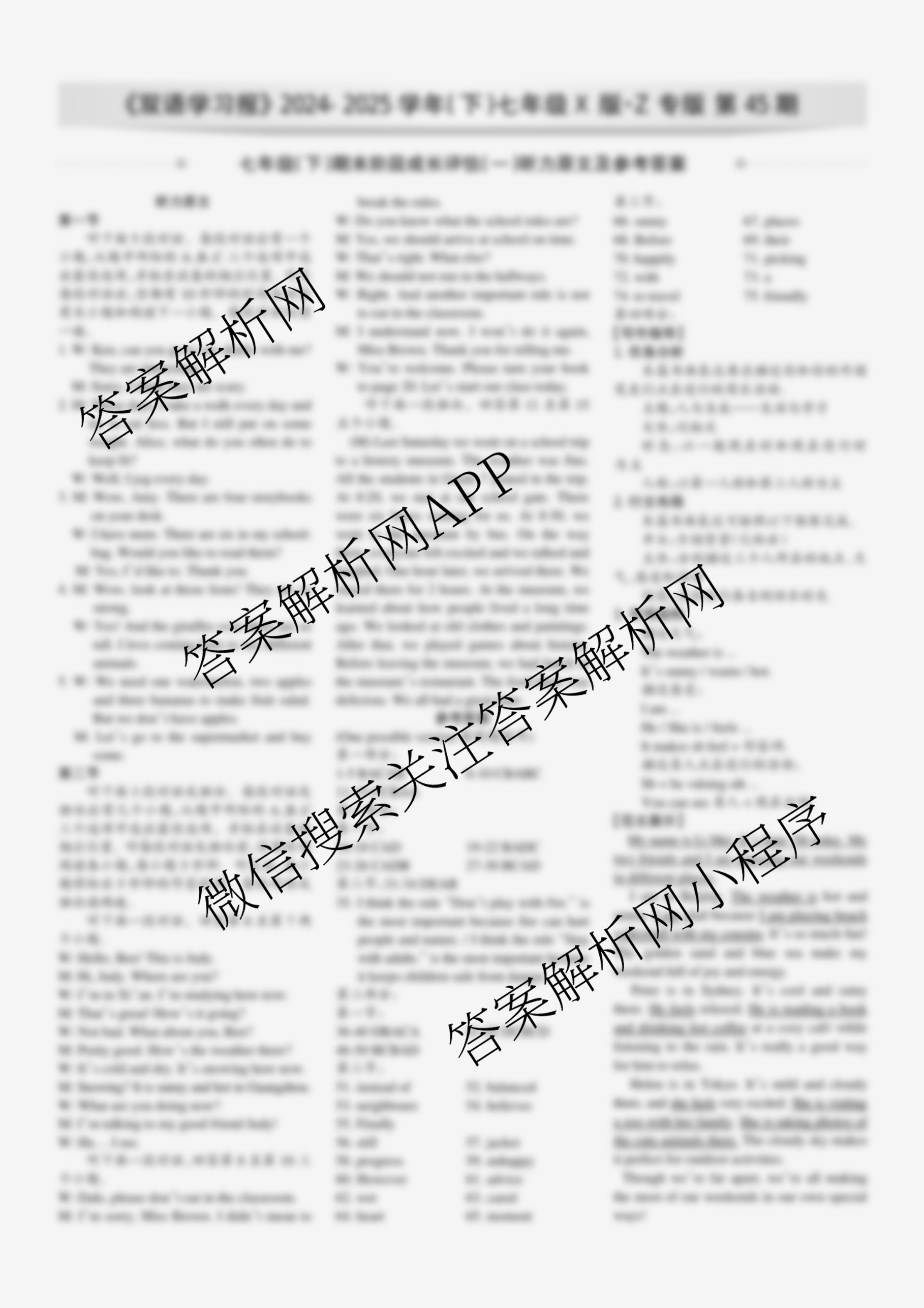 2024-2025学年下学期 双语学习报 七年级 X版Z专版第45期答案