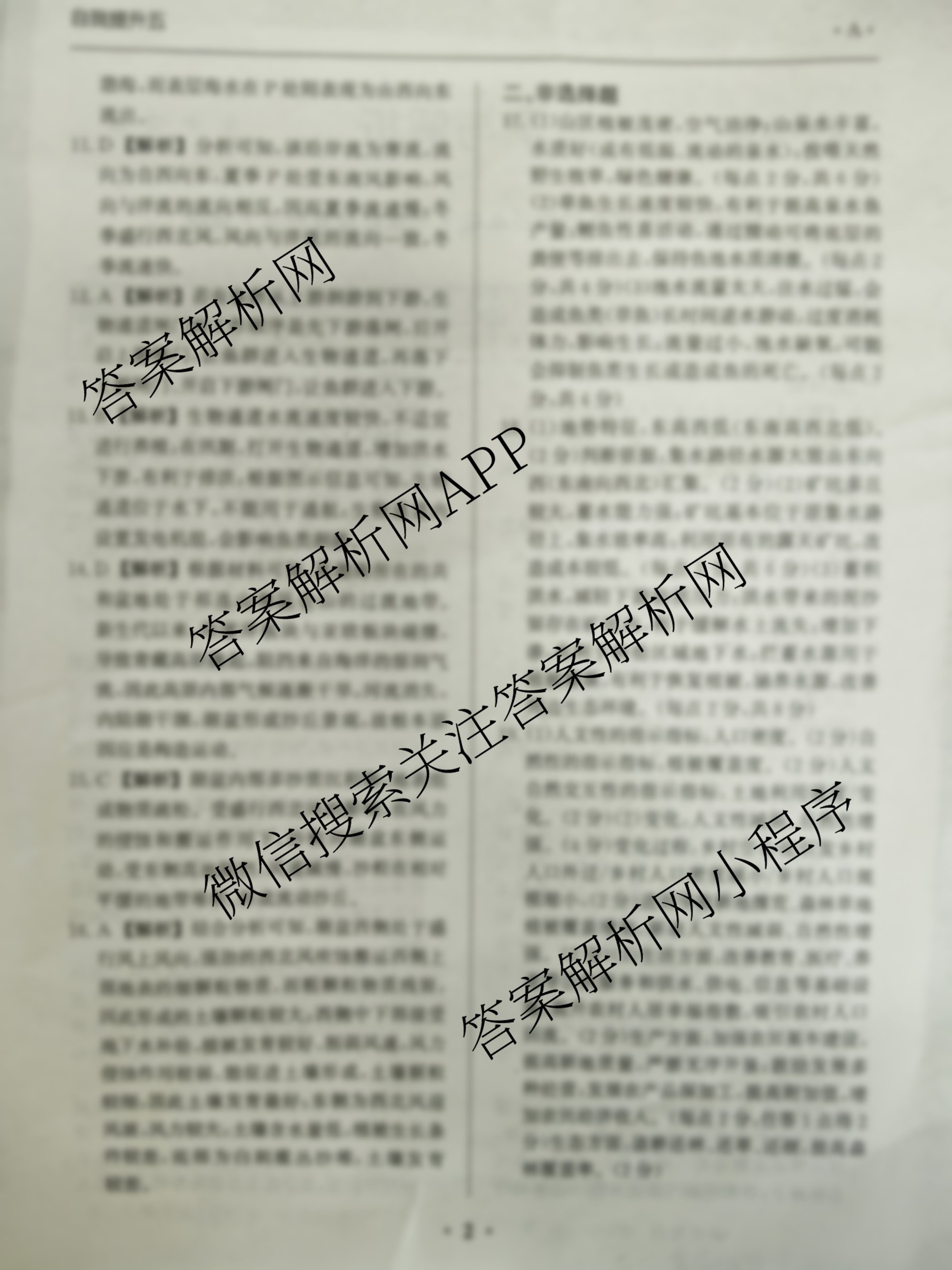 2024-2025高三学年度下学期年级自我提升五地理(A)答案
