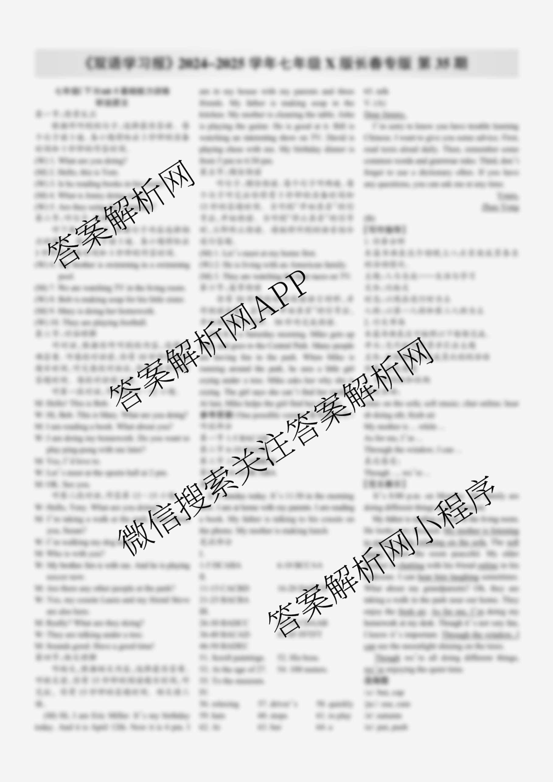 2024-2025学年下学期 双语学习报 七年级 X版·长春专版第35期答案,目前学英语报答案已经汇总了2024-2025学年下学期 双语学习报 七年级 X版·长春专版第35期答案的各科答案和试卷,获取更多学生双语报答案解析,请在关注本站。