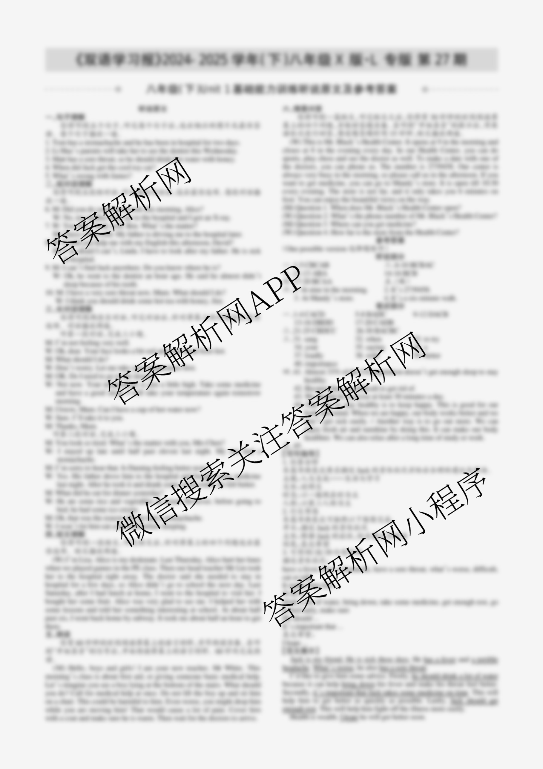 2024-2025学年下学期 双语学习报 八年级 X版·L专版第27期答案,目前学英语报答案已经汇总了2024-2025学年下学期 双语学习报 八年级 X版·L专版第27期答案的各科答案和试卷,获取更多学生双语报答案解析,请在关注本站。