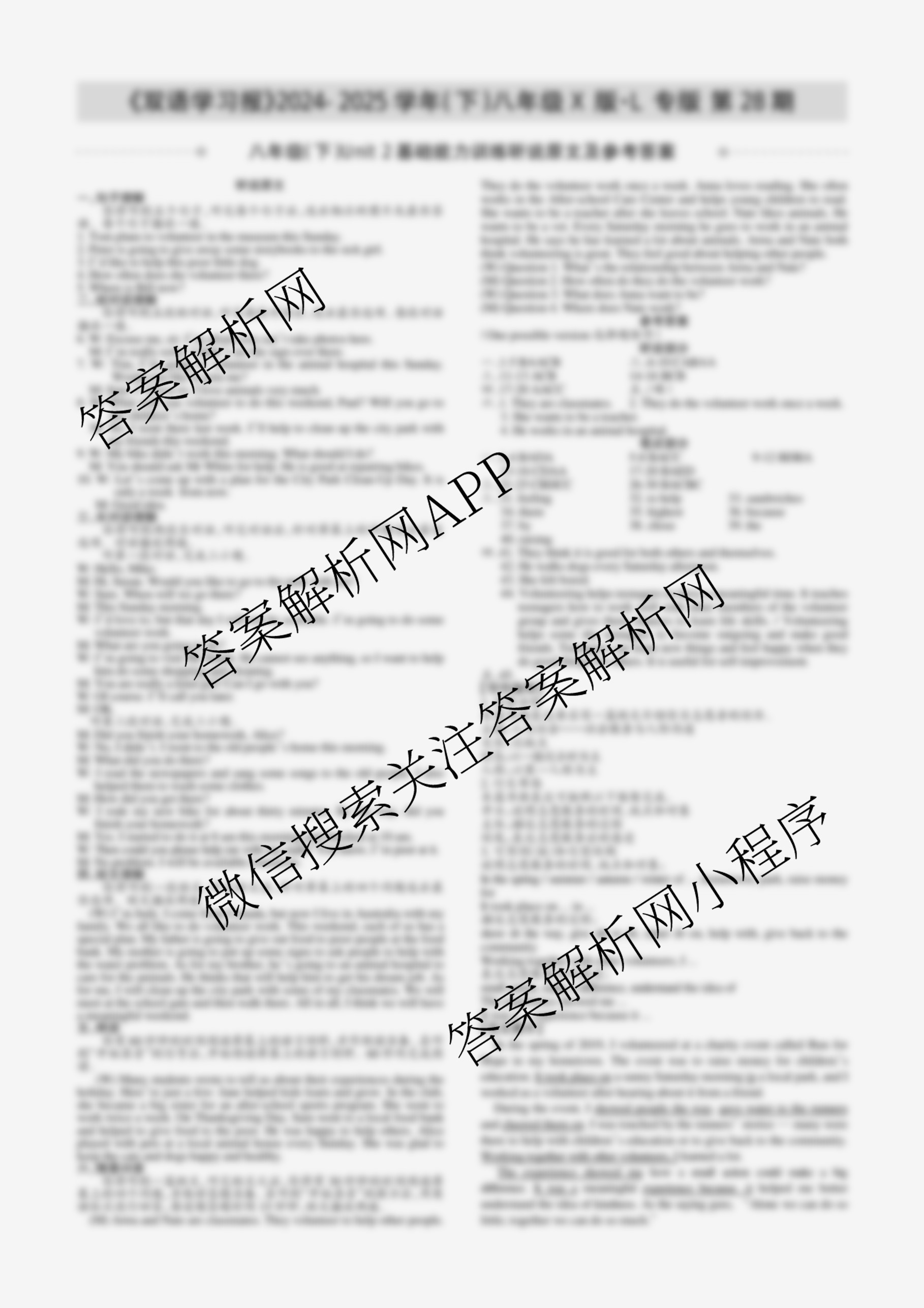 2024-2025学年下学期 双语学习报 八年级 X版·L专版第28期答案,目前学英语报答案已经汇总了2024-2025学年下学期 双语学习报 八年级 X版·L专版第28期答案的各科答案和试卷,获取更多学生双语报答案解析,请在关注本站。