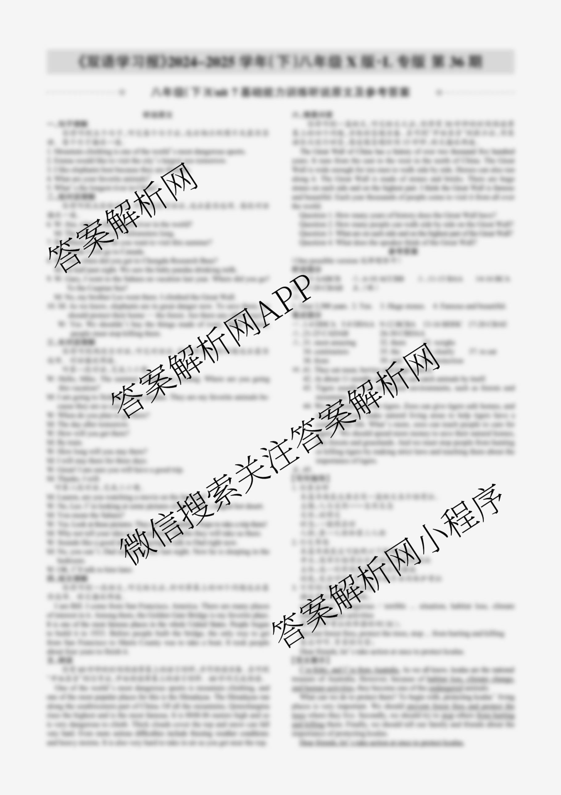 2024-2025学年下学期 双语学习报 八年级 X版·L专版第36期答案,目前学英语报答案已经汇总了2024-2025学年下学期 双语学习报 八年级 X版·L专版第36期答案的各科答案和试卷,获取更多学生双语报答案解析,请在关注本站。
