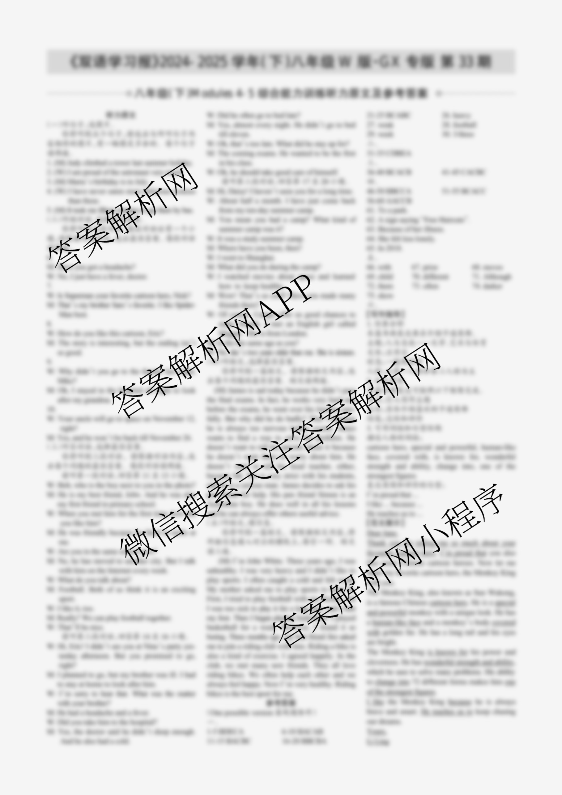 2024-2025学年下学期 双语学习报 八年级 W版·GX专版第33期答案,目前学英语报答案已经汇总了2024-2025学年下学期 双语学习报 八年级 W版·GX专版第33期答案的各科答案和试卷,获取更多学生双语报答案解析,请在关注本站。