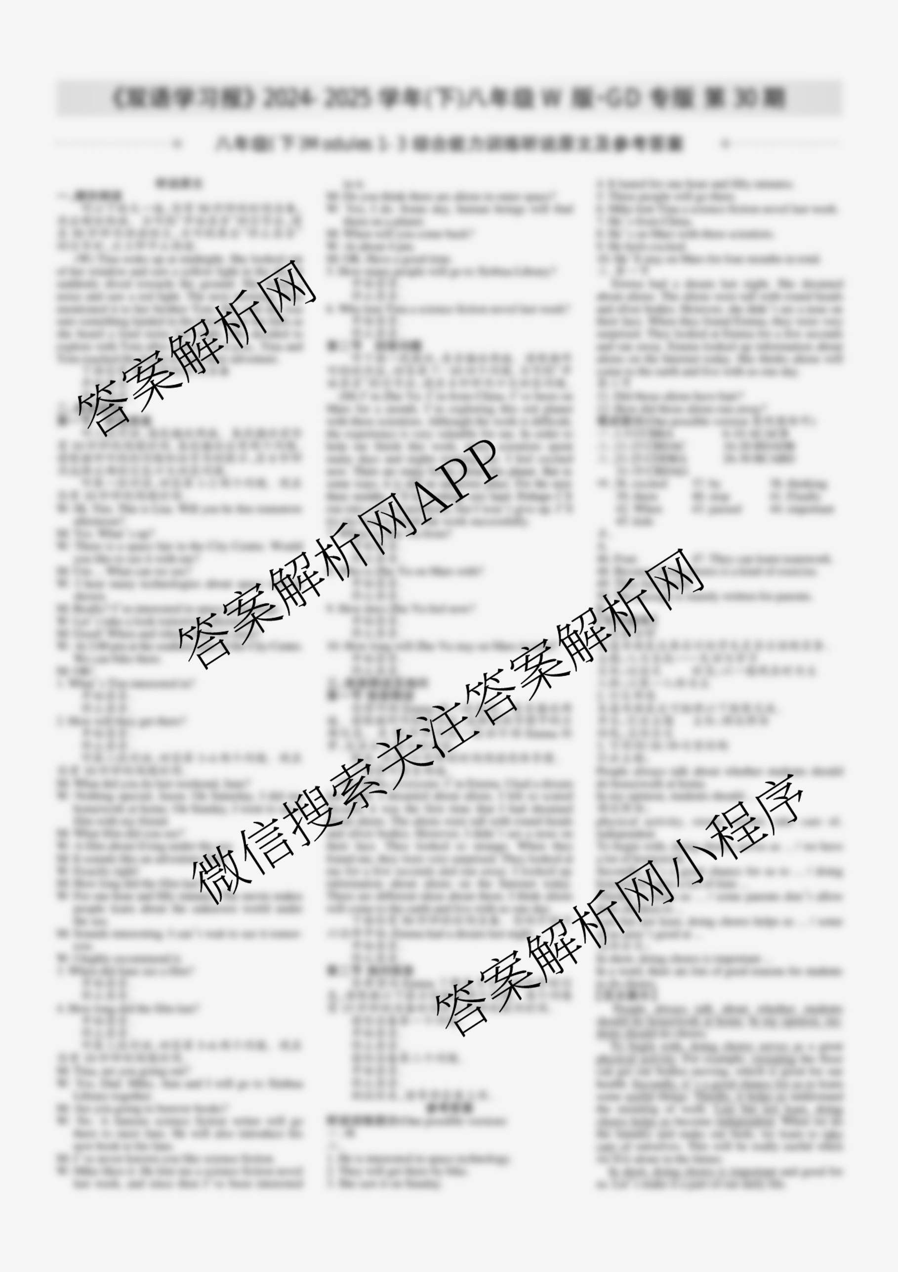 2024-2025学年下学期 双语学习报 八年级 W版·GD专版第30期答案,目前学英语报答案已经汇总了2024-2025学年下学期 双语学习报 八年级 W版·GD专版第30期答案的各科答案和试卷,获取更多学生双语报答案解析,请在关注本站。