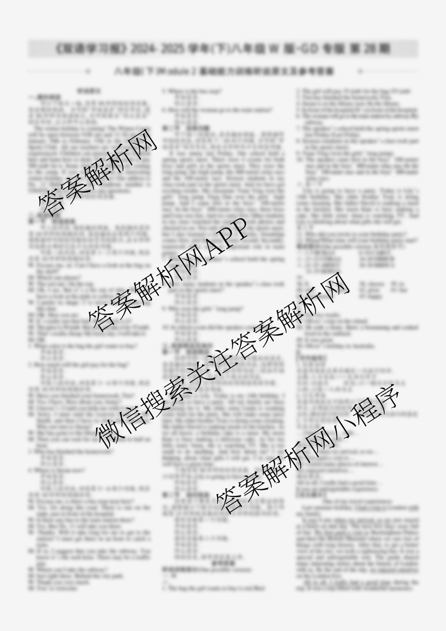 2024-2025学年下学期 双语学习报 八年级 W版·GD专版第28期答案,目前学英语报答案已经汇总了2024-2025学年下学期 双语学习报 八年级 W版·GD专版第28期答案的各科答案和试卷,获取更多学生双语报答案解析,请在关注本站。