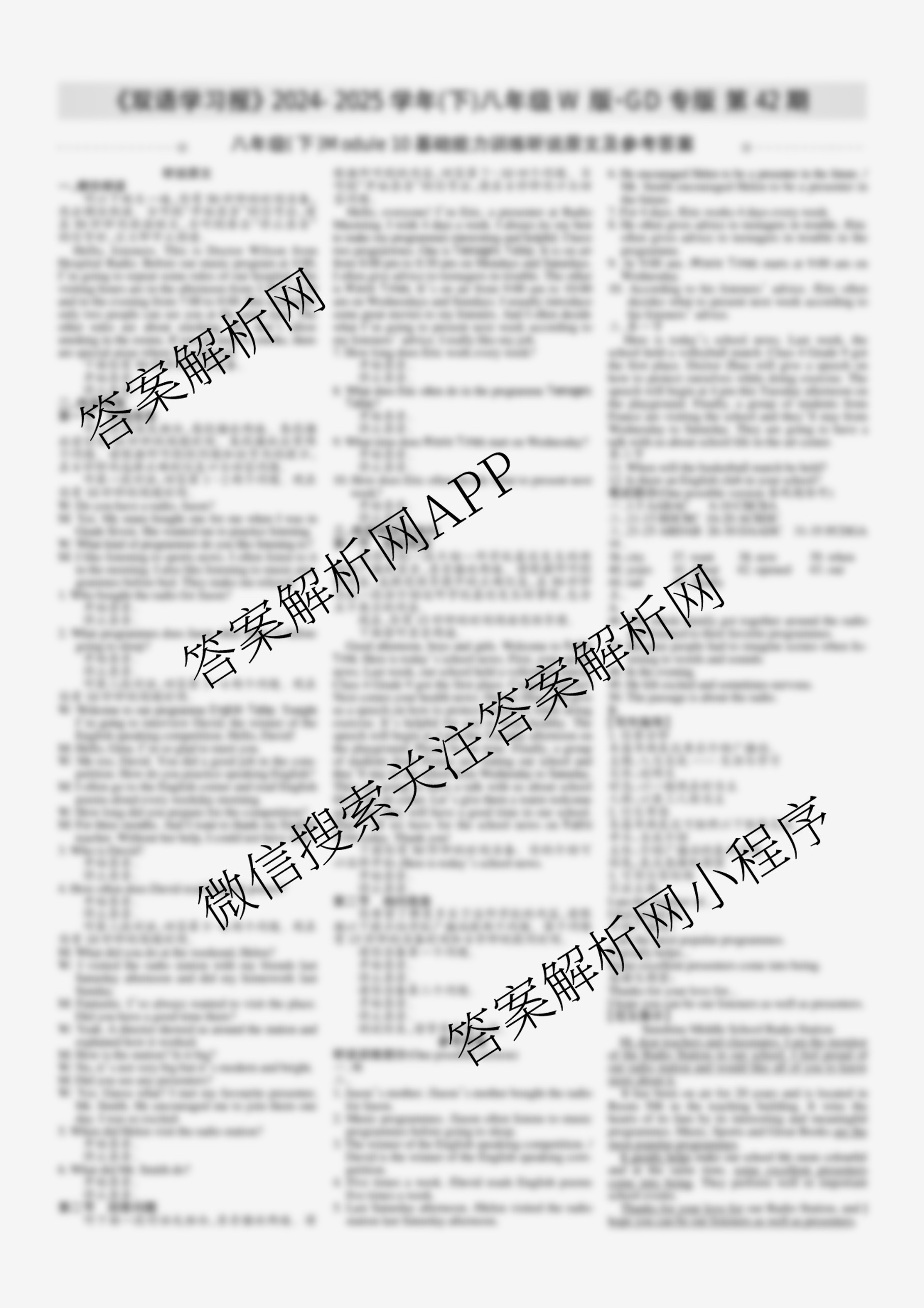 2024-2025学年下学期 双语学习报 八年级 W版·GD专版第42期答案,目前学英语报答案已经汇总了2024-2025学年下学期 双语学习报 八年级 W版·GD专版第42期答案的各科答案和试卷,获取更多学生双语报答案解析,请在关注本站。
