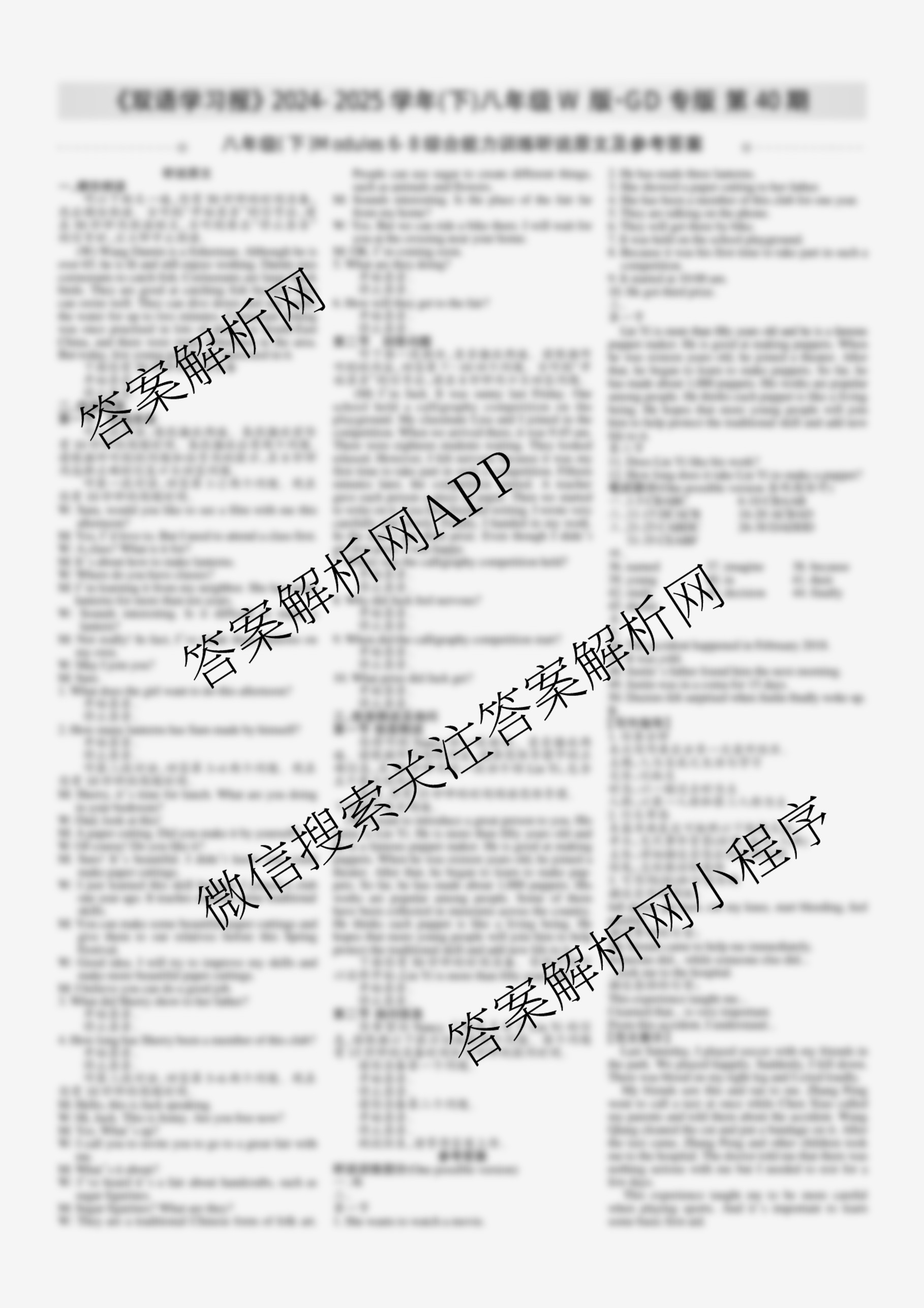 2024-2025学年下学期 双语学习报 八年级 W版·GD专版第40期答案,目前学英语报答案已经汇总了2024-2025学年下学期 双语学习报 八年级 W版·GD专版第40期答案的各科答案和试卷,获取更多学生双语报答案解析,请在关注本站。